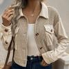 Куртка кардиган короткий вельвет мода универсальный красивый сращивание начесаный птичий глаз клетчатый жакет женский