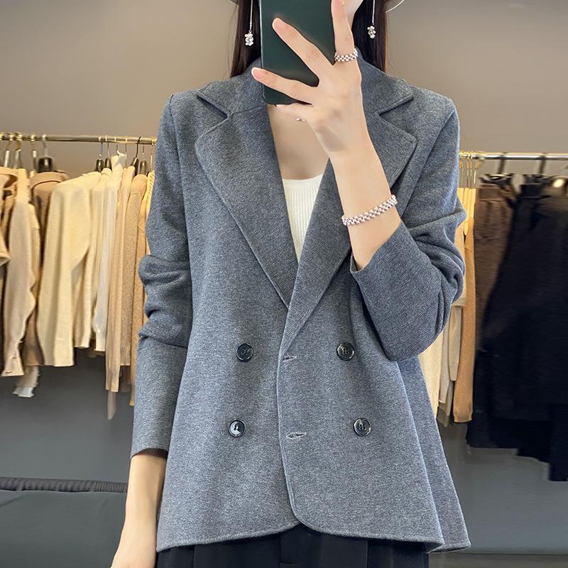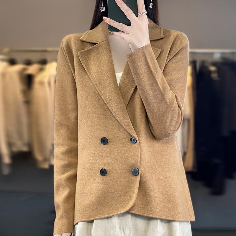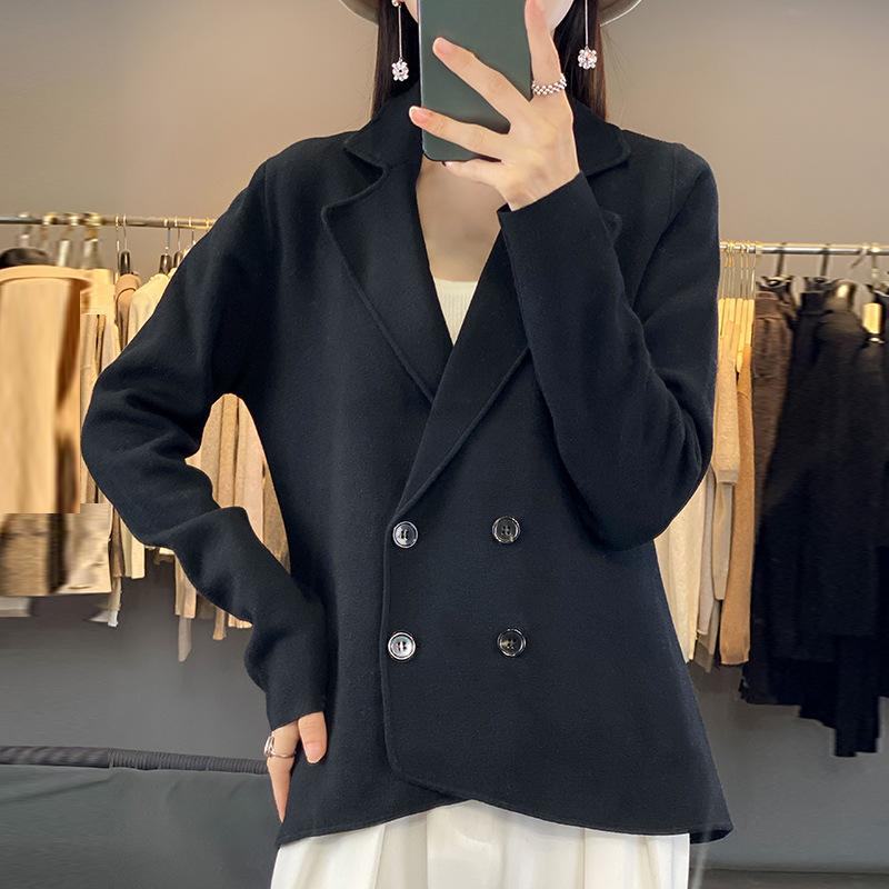Осенне-зимняя женская трикотажная куртка с воротником для костюма, модный трикотажный кардиган, темпераментные топы