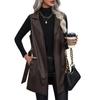 Женский жилет-пальто на осень-весну с поясом, шнуровкой на талии, отложным воротником, гладкий кардиган из искусственной кожи средней длины, женский жилет для поездок на работу и шопинга