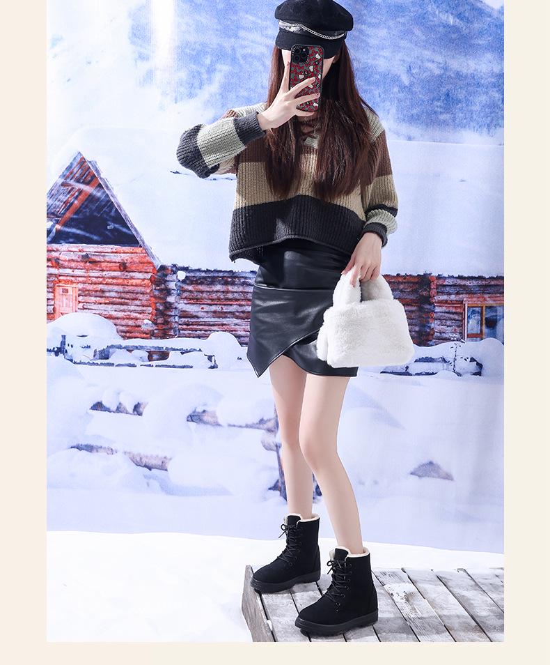 Ощутите максимальный комфорт и стиль в этих высоких зимних ботинках унисекс с мягкой бархатной подкладкой, которая сохранит ваши ноги в тепле в холодную погоду.. Эти ботинки с верхом из хлопка сочетают в себе мягкость и прочность для повседневной носки.. Шнуровка спереди обеспечивает надежную посадку и добавляет модный штрих к вашему зимнему гардеробу.. Несмотря на солидный вид, каблук высотой 0,04 дюйма обеспечивает естественное ощущение, что делает их идеальными как для повседневных прогулок, так и для приключений на свежем воздухе.. Идеально подходит для тех, кто ищет варианты больших размеров и при этом ценит современную корейскую эстетику.