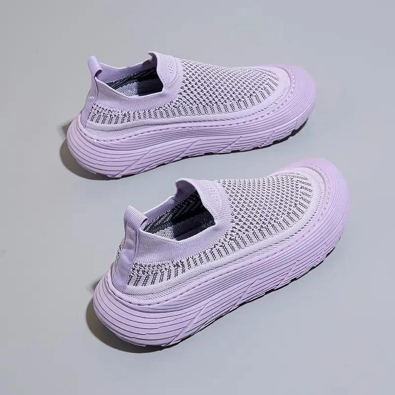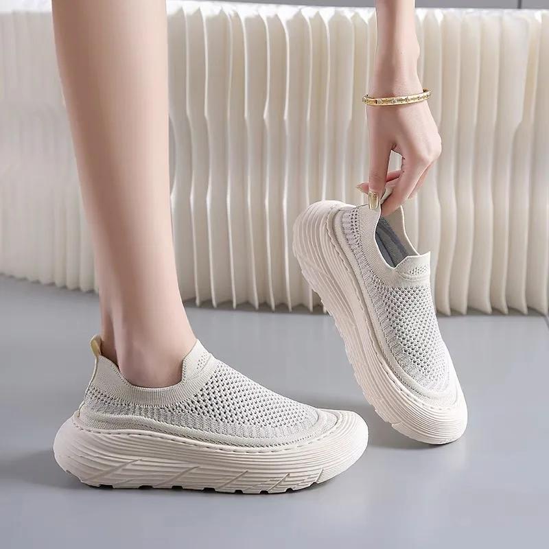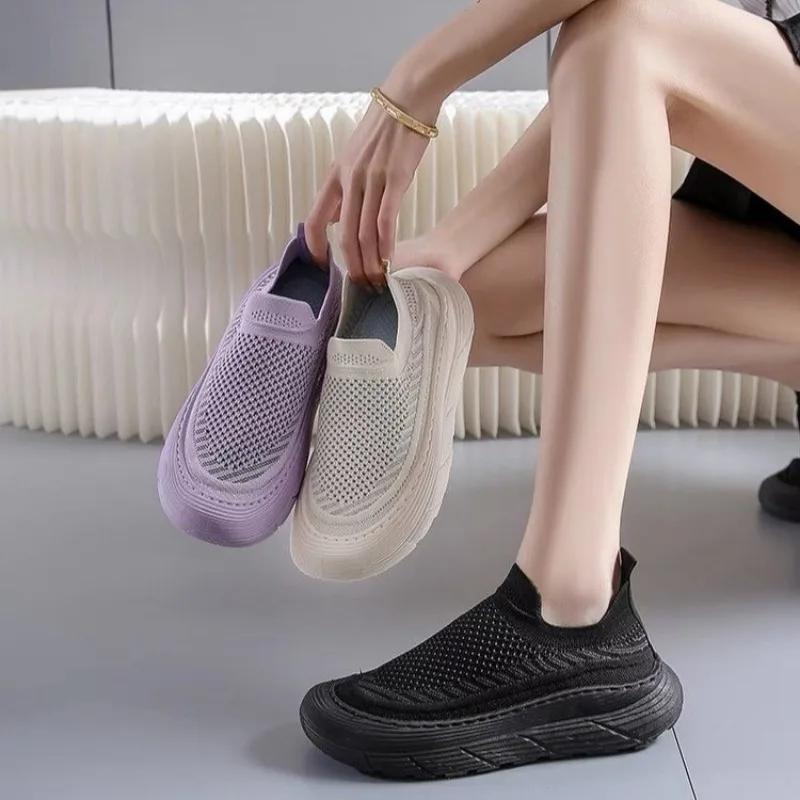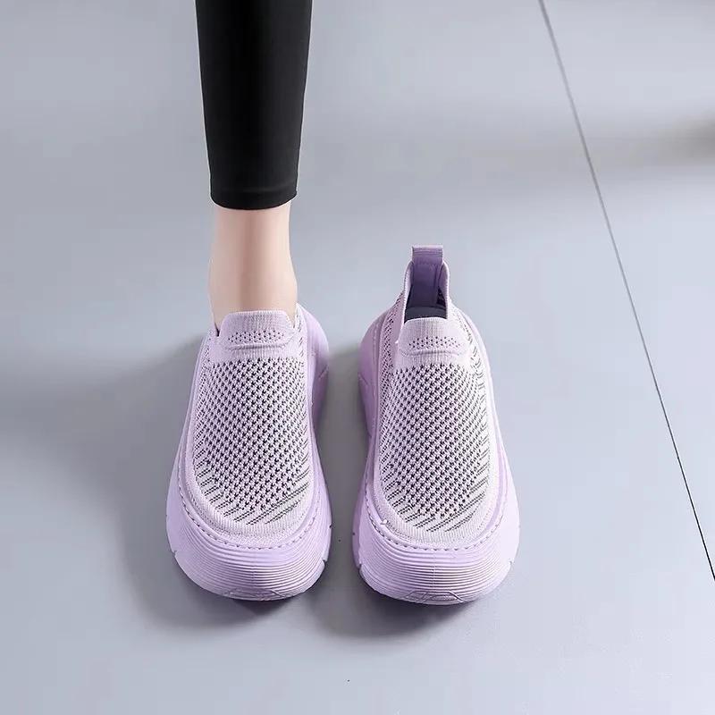 Мода 2024 года, горячая распродажа женской обуви, женская обувь без застежек, вулканизированная обувь, модная сетчатая женская повседневная обувь, новые универсальные кроссовки с круглым носком