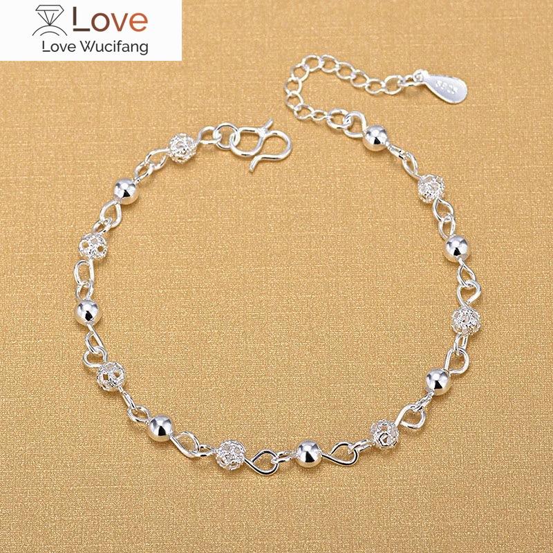 Настоящие серебряные ножные браслеты, модные серебряные украшения, полые бусины, ножной браслет для женщин, девочек, друзей, босиком, украшения для ног, подарки