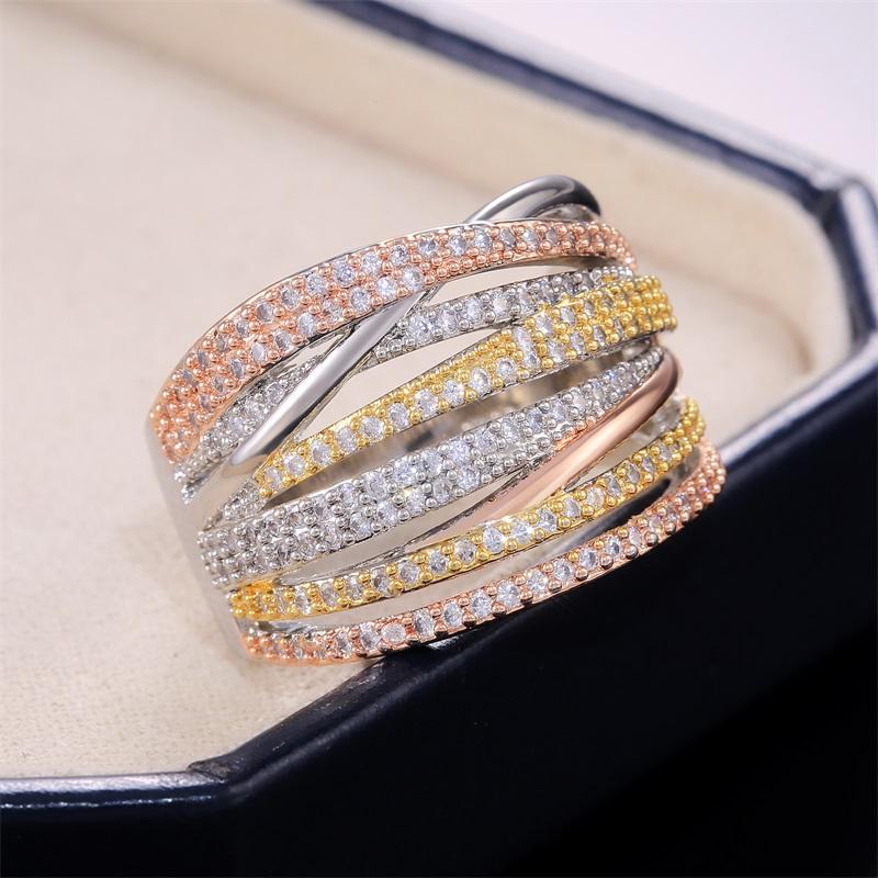Кольца-бандажи CAOSHI с бриллиантами и кристаллами для женщин, перекрывающийся дизайн, полностью вымощенный кубическим цирконием, модные украшения для вечеринок, подарок на День святого Валентина