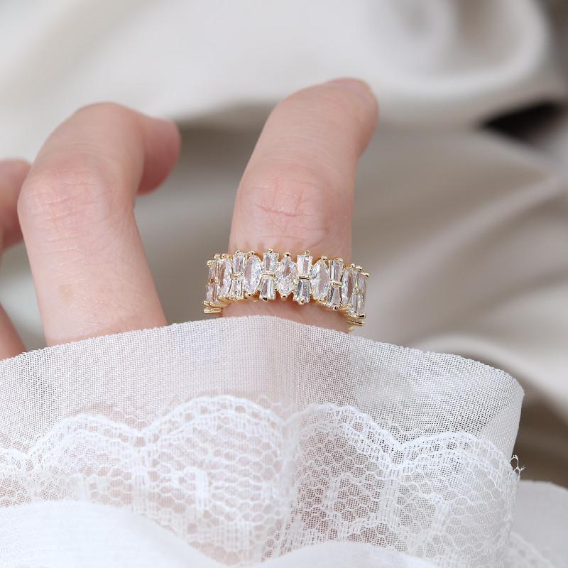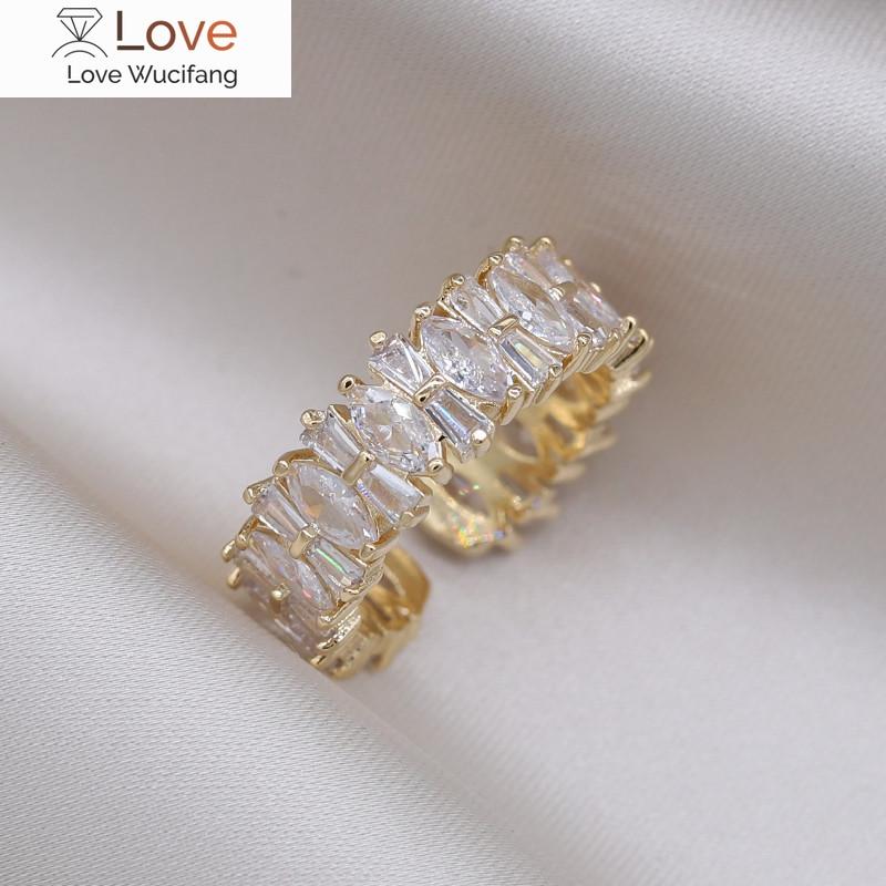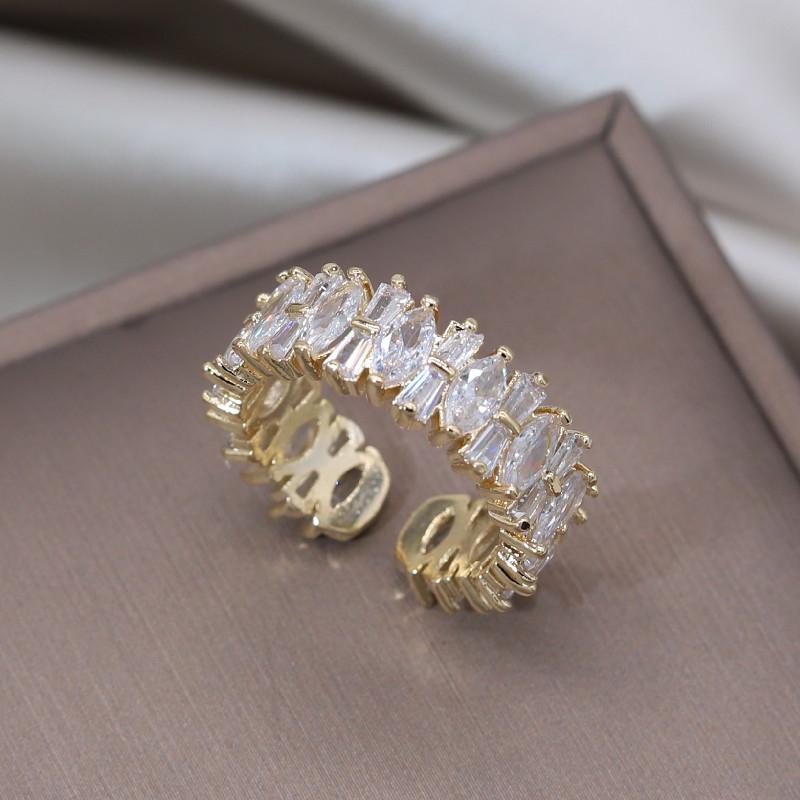 Настоящее золотое покрытие, корейский дизайн, модные ювелирные изделия, роскошное кольцо с полным цирконием, элегантные женские вечерние регулируемые аксессуары
