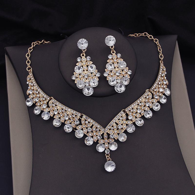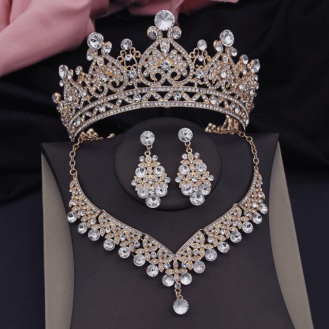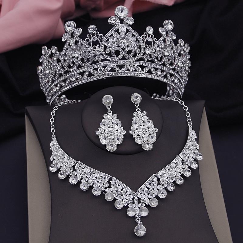 Винтажные хрустальные короны свадебные комплекты ювелирных изделий для женщин диадемы колье ожерелье комплекты для свадьбы корона комплект ювелирных изделий аксессуары