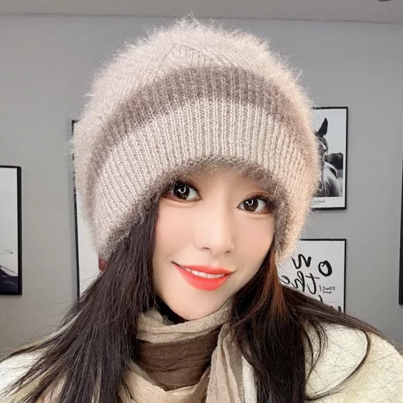 Двухслойная вязаная модная зимняя шапка для женщин, вязаная термошапка, осенне-зимняя женская шапка