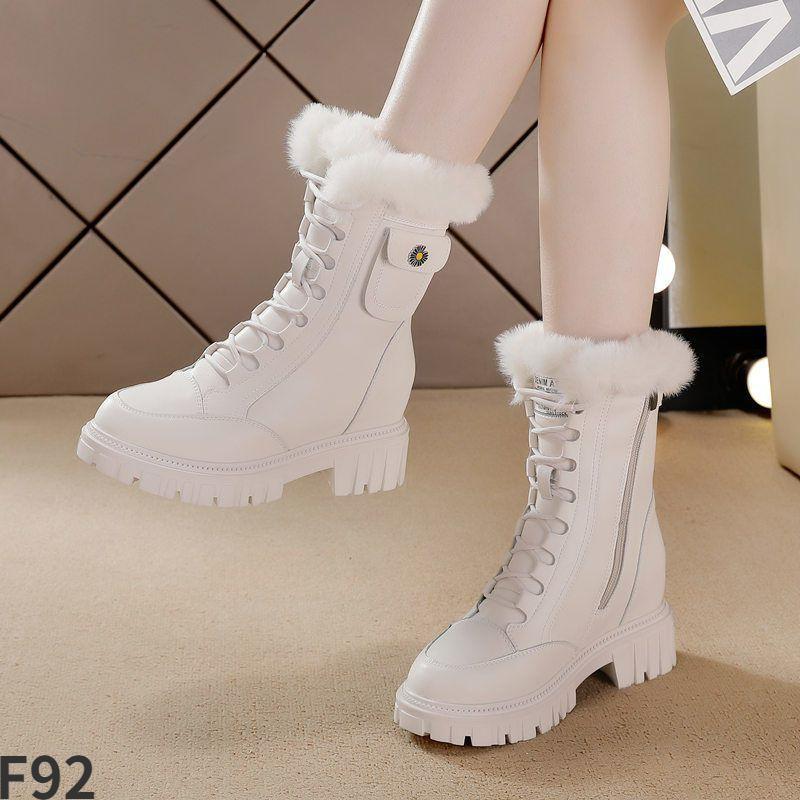 Мода 2024 Новые зимние ботинки Женские нескользящие верхние ботинки Женская обувь Внутренняя толстая подошва плюшевые хлопковые ботинки Ботинки со шнуровкой и средним рукавом