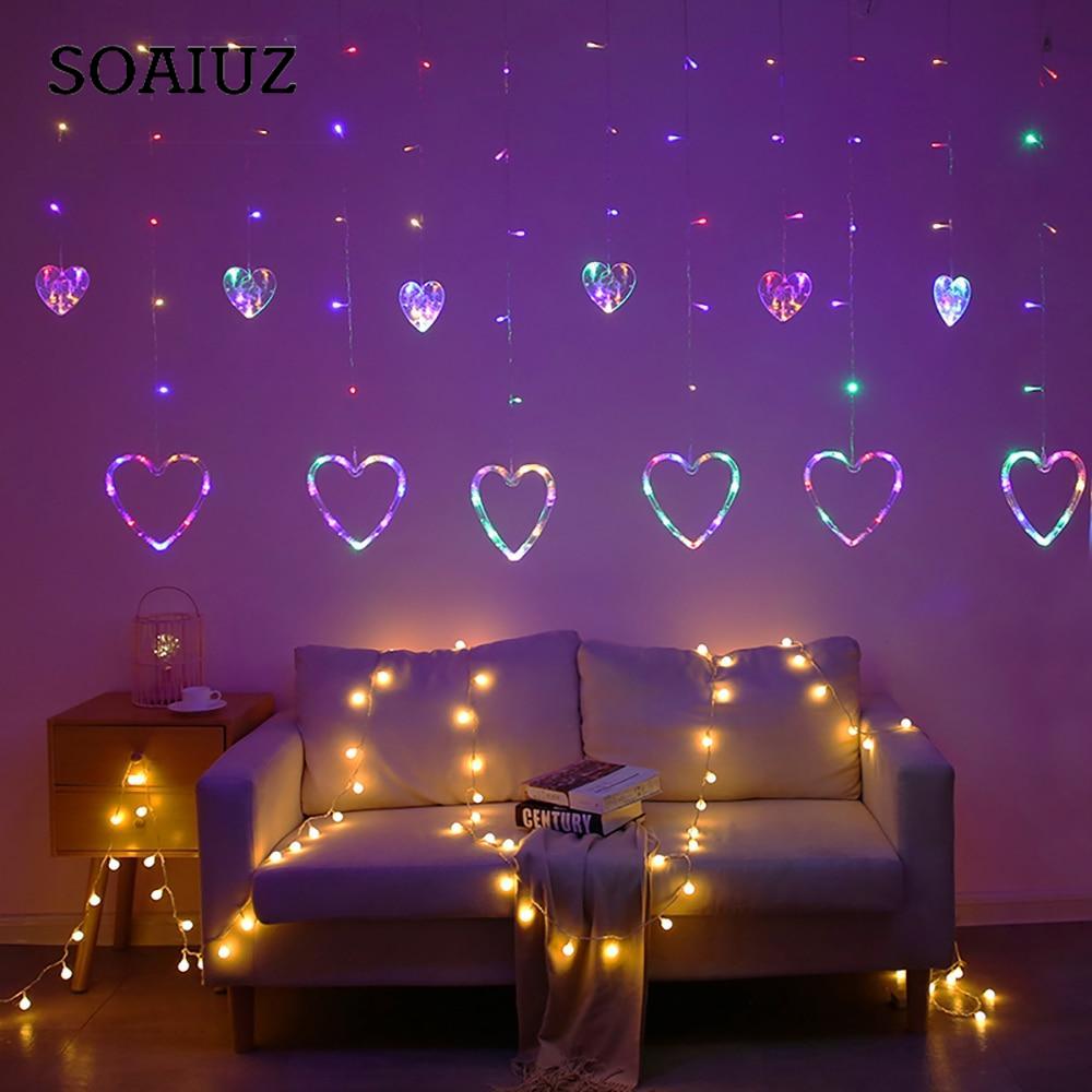 Светодиодные занавески с сердечками, гирлянды, рождественские гирлянды, гирлянды, 8 режимов, вечерние на день Святого Валентина, домашняя свадьба, новогодние украшения