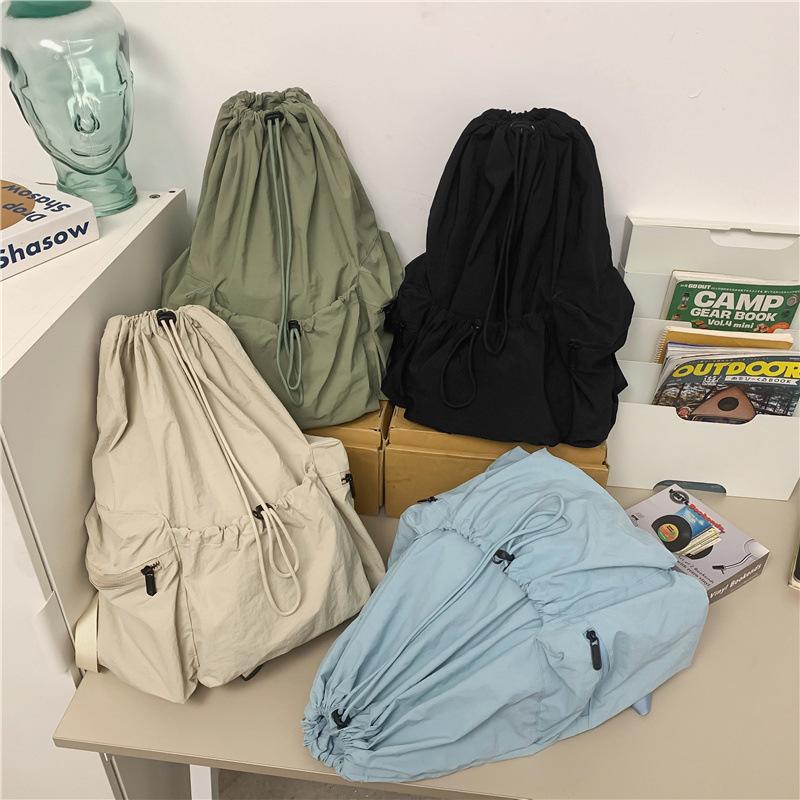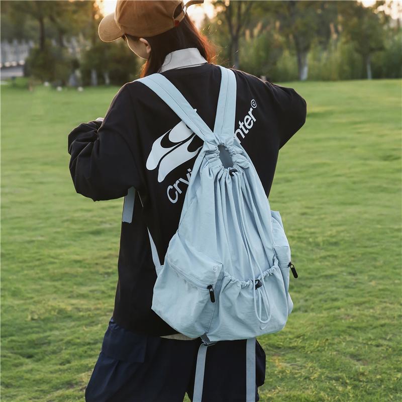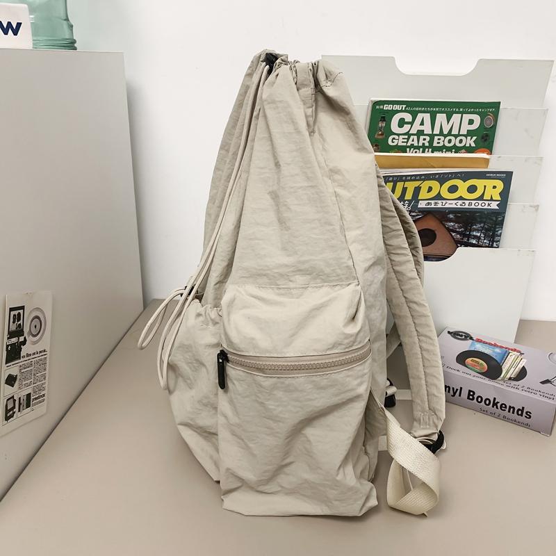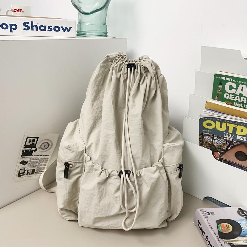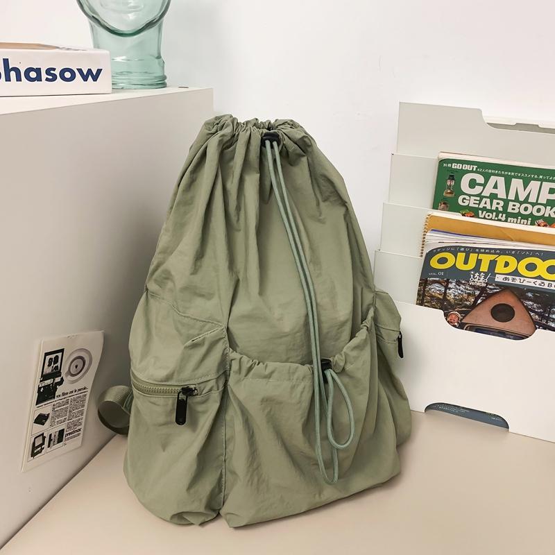 Рюкзак женский большой емкости с карманами на шнурке, легкий рюкзак с тканевой сумкой на шнурке, школьный ранец