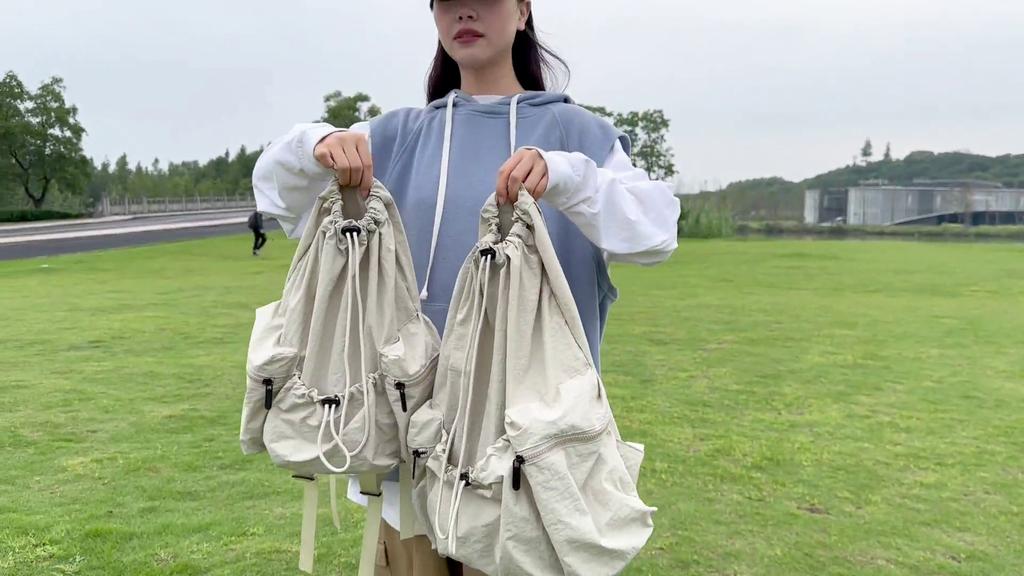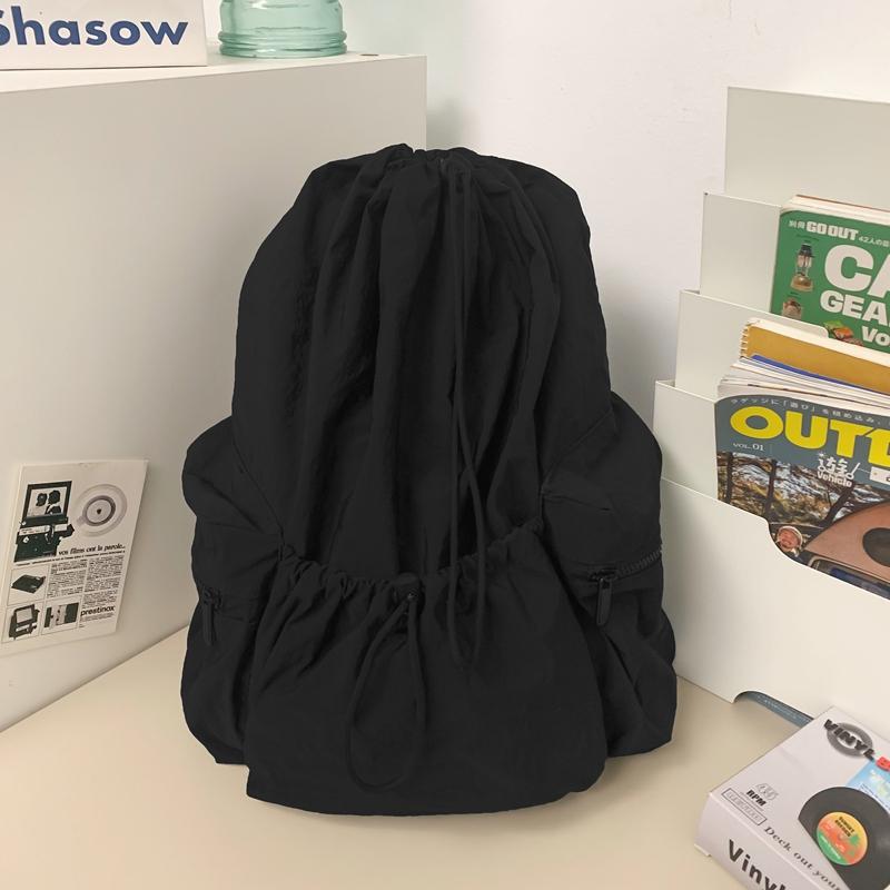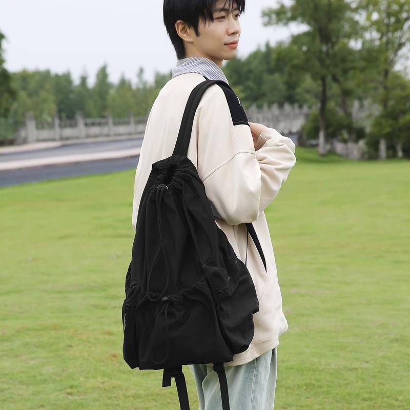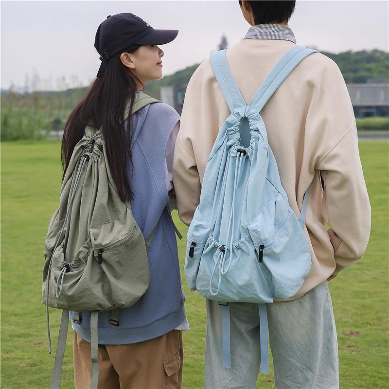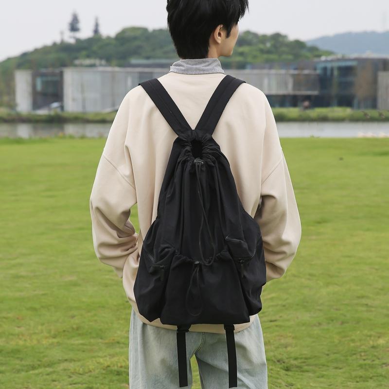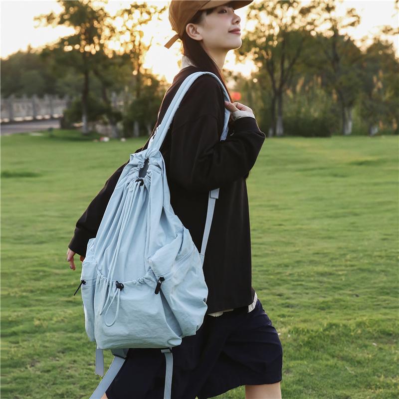 Рюкзак женский большой емкости с карманами на шнурке, легкий рюкзак с тканевой сумкой на шнурке, школьный ранец
