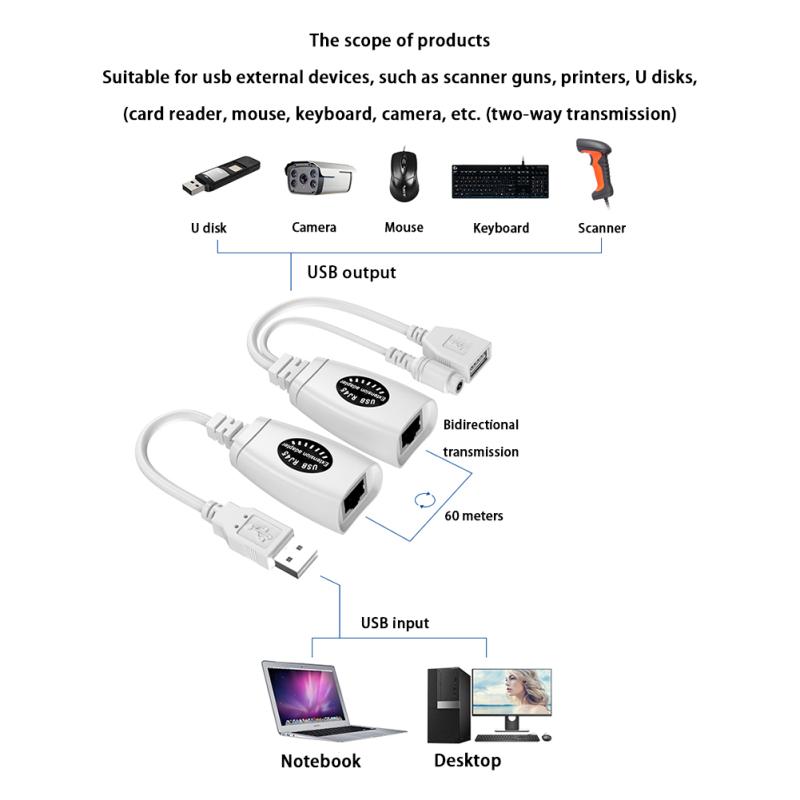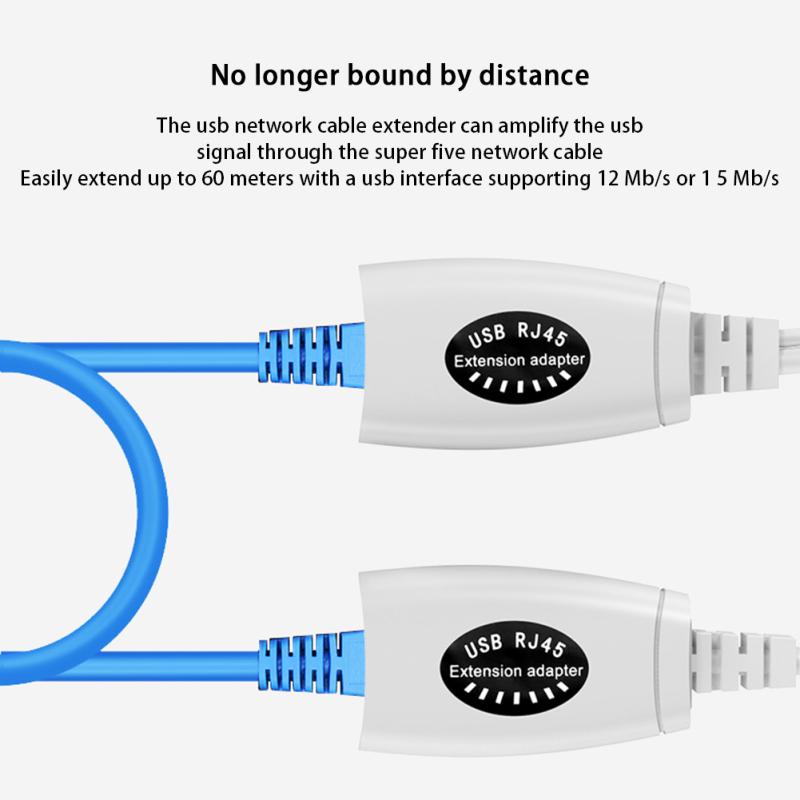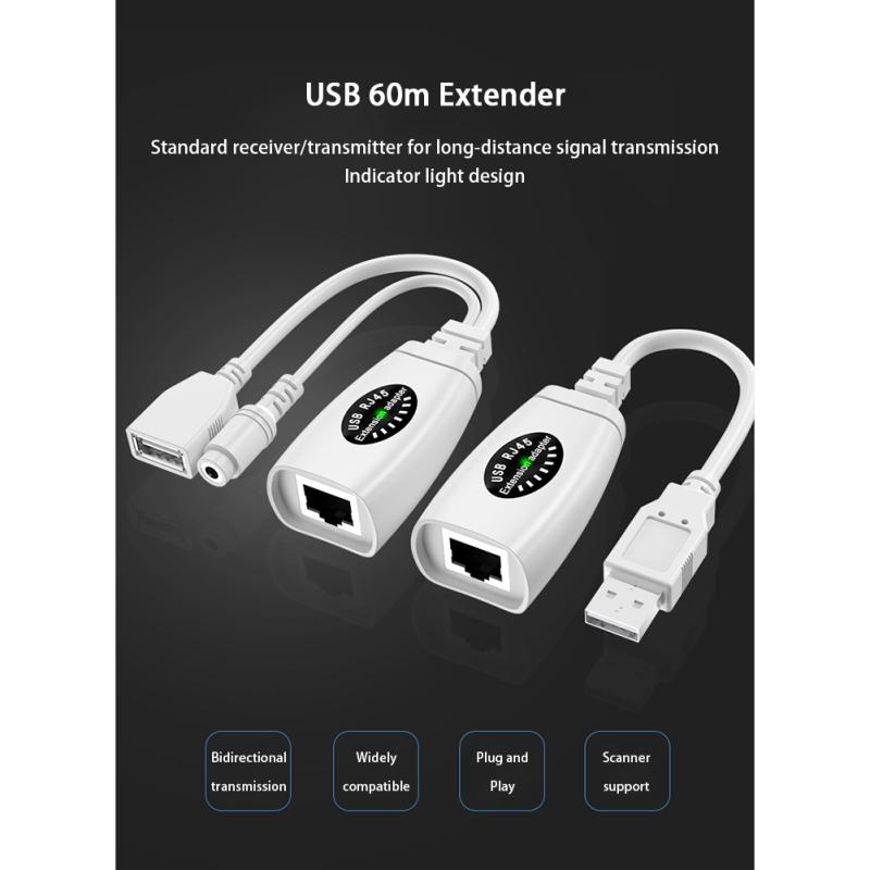 Адаптер-удлинитель USB-удлинителя длиной 60 м, усилитель сигнала двусторонней передачи, сетевой кабель USB Rj45