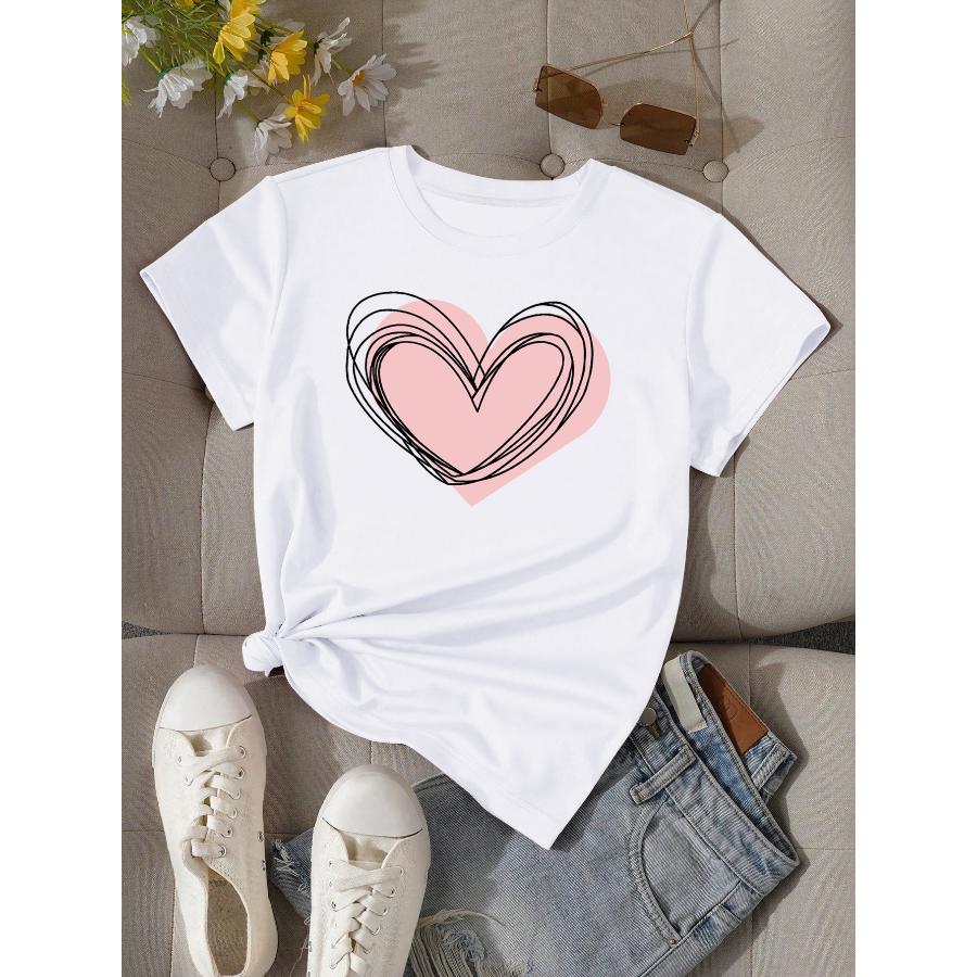 Футболка с принтом «love», повседневный топ с короткими рукавами и круглым вырезом для лета и весны, женская одежда