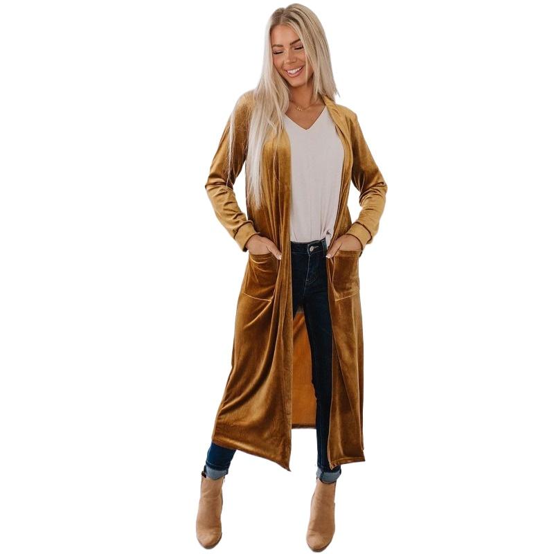 Длинный бархатный кардиган без пуговиц, пальто, однотонная свободная шаль с длинными рукавами для женщин — купить товар онлайн с бесплатной доставкой по всему миру!