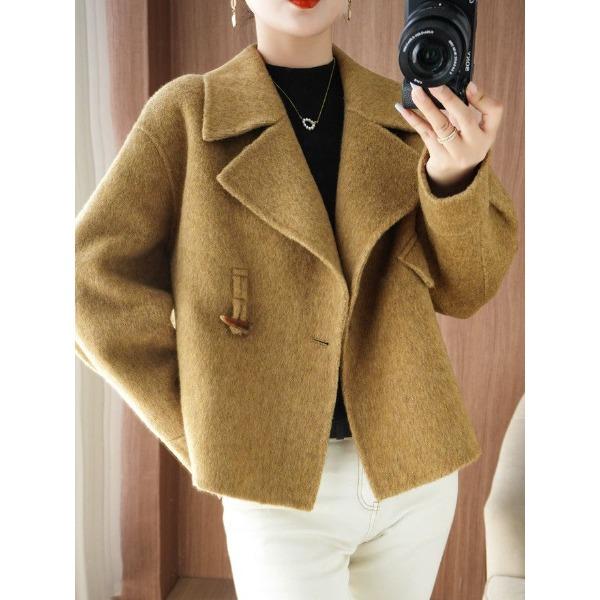 Женское шерстяное пальто короткого фасона с воротником-лацканом, двубортный дизайн — купить товар онлайн с бесплатной доставкой по всему миру!
