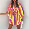 Модное мини-платье с рукавами «летучая мышь» и принтом на шнуровке для женщин, сексуальное повседневное свободное бохо-праздничное короткое платье для женщин