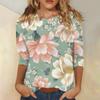Женская мода повседневная футболка с круглым вырезом и рукавом три четверти с принтом, летняя одежда для женщин, корейская популярная одежда