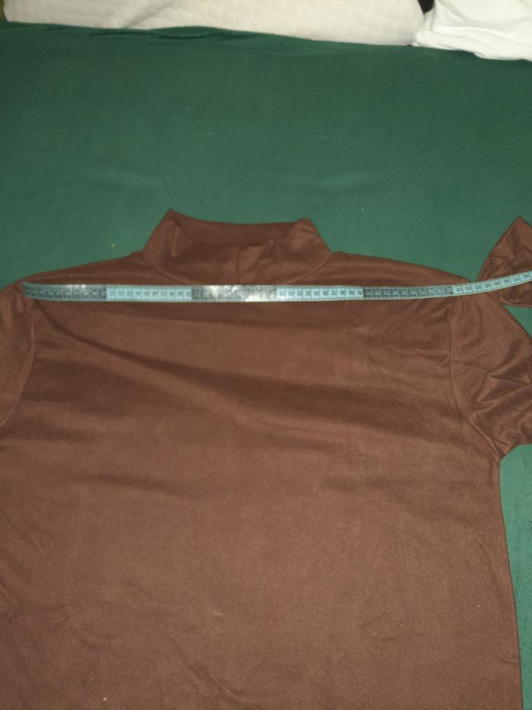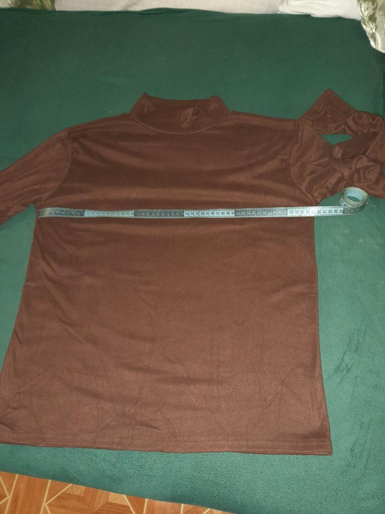 Ткань приятная на ощупь, цвет как на промофото продавца. Мой телефон из-за вспышки искажает и делает светлее. Обхват груди в нерастянутом виде 110см. Длина изделия(70см) и длина рукава (64см) у продавца верные. Мне флисовая водолазка понравилась села на обьем (110-96-114) отлично.