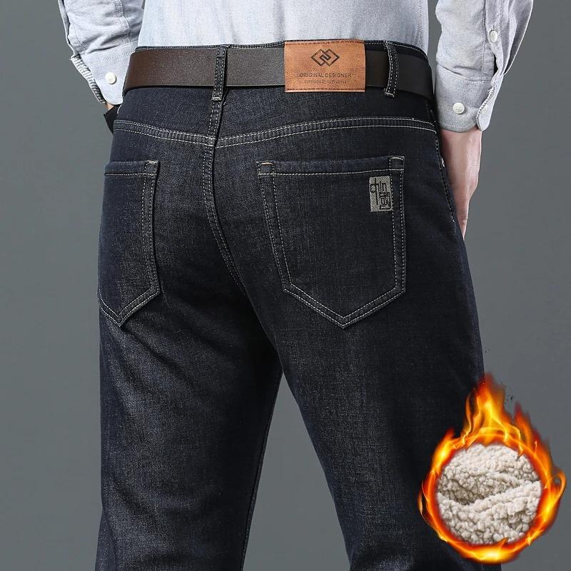 2025 Мужские деловые модные теплые прямые флисовые джинсы классического стиля зимние утолщенные джинсовые брюки повседневные брюки мужские — купить товар онлайн с бесплатной доставкой по всему миру!