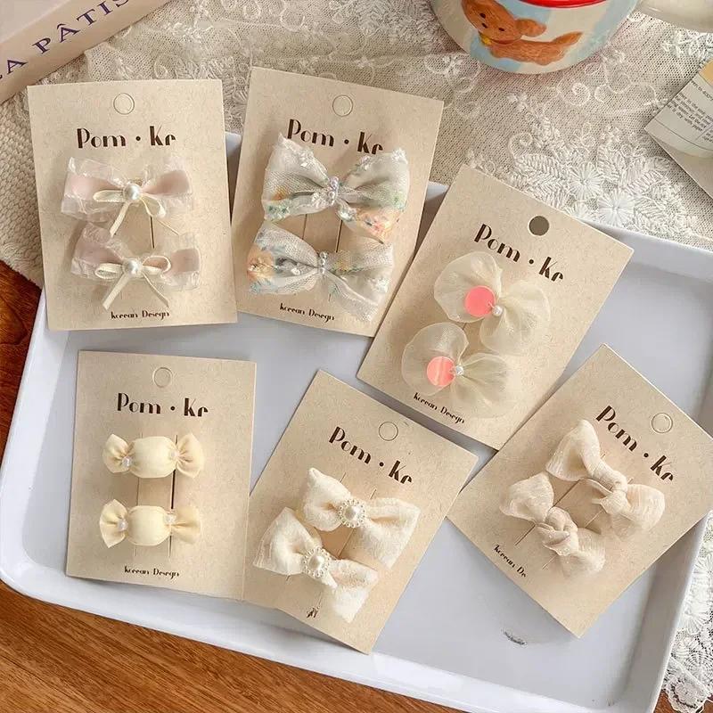 2 шт./комплект, милая заколка для волос принцессы для девочки, бежевый цвет, кружевной бант, конфетная заколка для волос для малышей, полная ткань, детская челка, боковая заколка