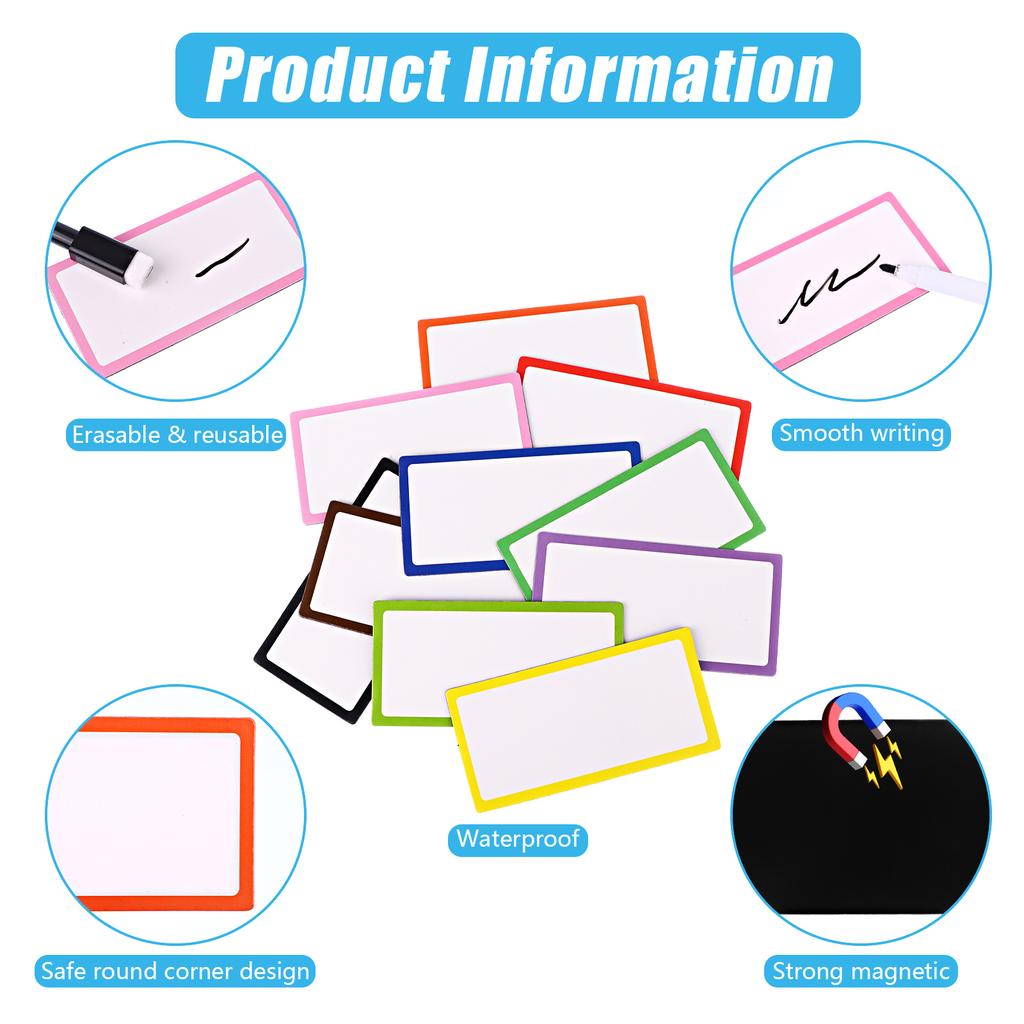 Размер товара: Наши магнитные этикетки сухого стирания доступны в 2 размерах: 8 см x 3,5 см/3 дюйма x 1,5 дюйма (45 листов), 10 см x 5 см/ 4 дюйма x 2 дюйма (30 листов); смешанные цвета, общий размер, подходящий большинству людей, значительно повышают эффективность вашей работы.