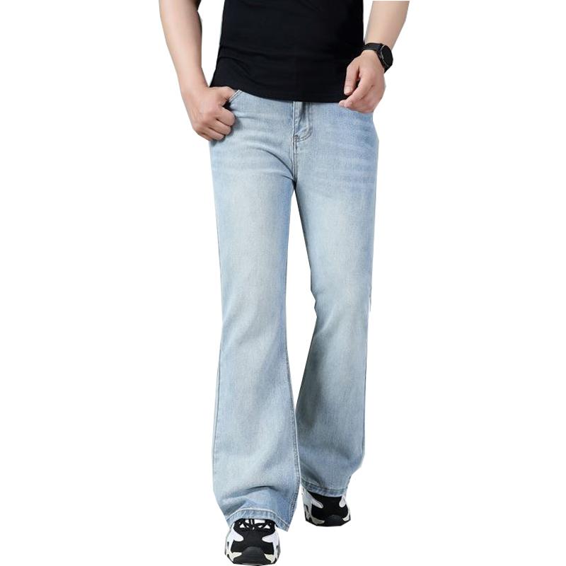 Мужские расклешенные джинсы средней посадки, мужские облегающие повседневные брюки из денима, светло-голубые джинсы — купить товар онлайн с бесплатной доставкой по всему миру!