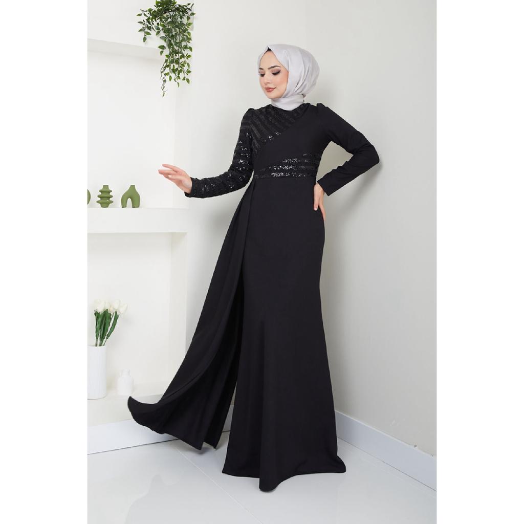 Женская одежда Вечернее платье Модное накидка с блестками Хиджаб Вечернее платье в форме рыбы 2711 Черный