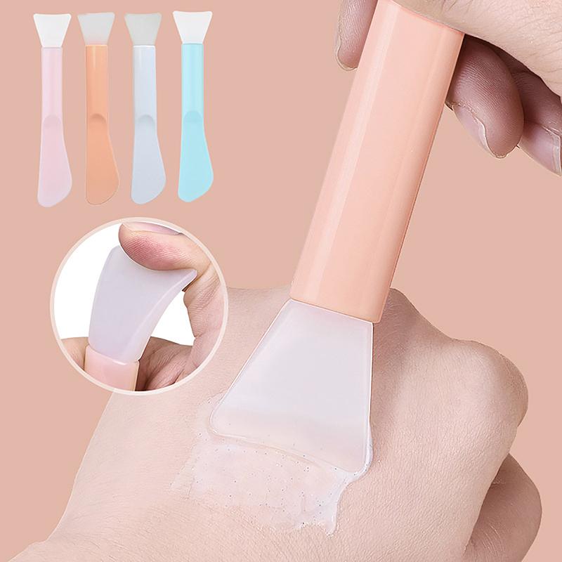Двойная силиконовая щетка для маски для лица с мягкой головкой и скребком, встроенная палочка для размешивания грязевой пленки двойного назначения, инструмент для самостоятельного нанесения косметической пленки