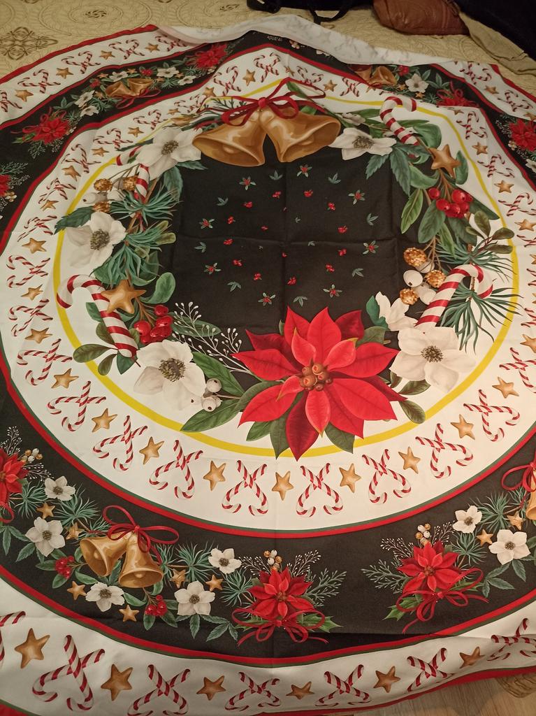 Скатерка яркая,как на фото,ткань приятная на ощупь, по столу не скользит.на небольшой круглый столик.рекомендую -для праздничного стола- ярко,красиво.благодар Продавца