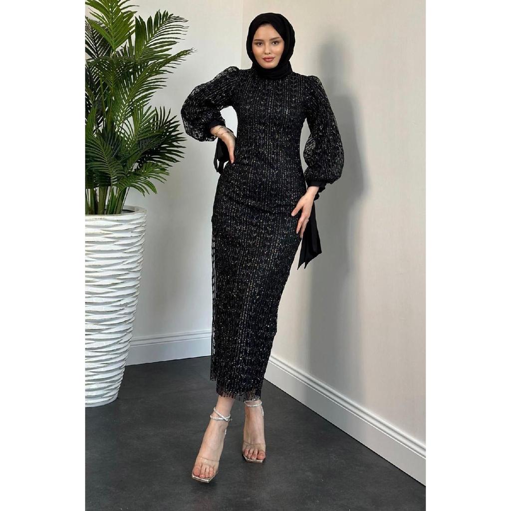 Вечернее платье-карандаш с блестками Didem, черное — купить товар онлайн с бесплатной доставкой до всему миру!