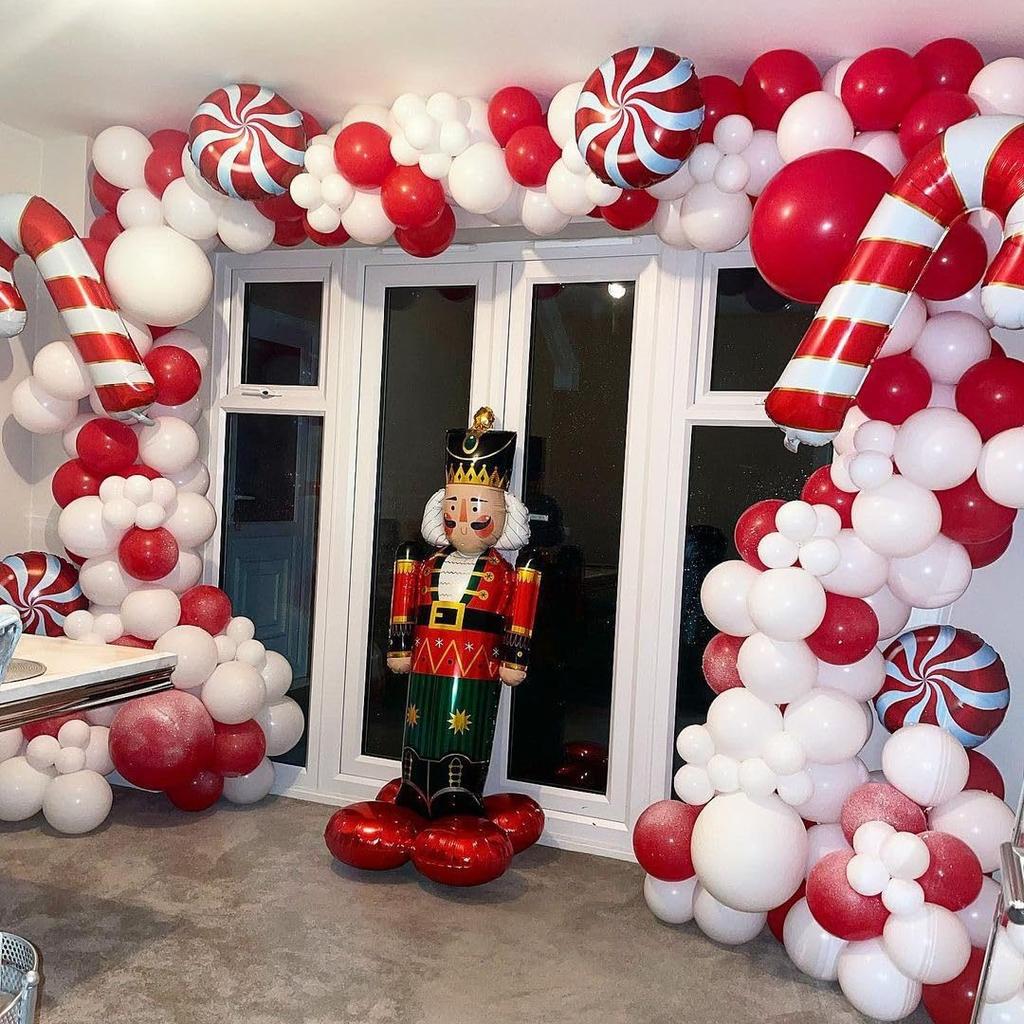 Рождественские шары красные и белые конфеты, венок, арка, леденец, трость, алюминиевая пленка, шар, украшение для рождественской вечеринки