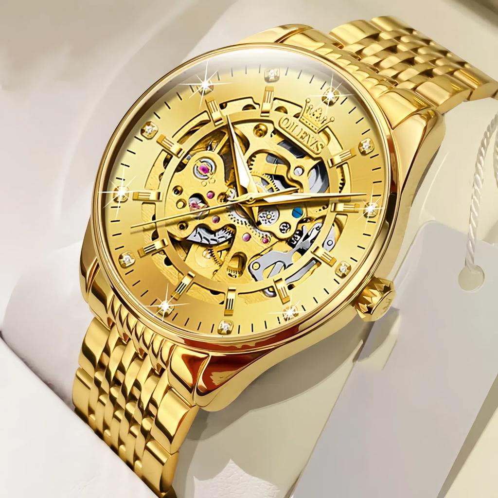 OLEVS 9920 Роскошные мужские часы с золотым полым циферблатом, автоматические механические наручные часы, водонепроницаемые светящиеся часы для мужчин, модные
