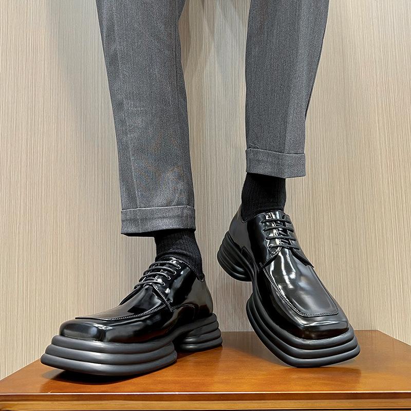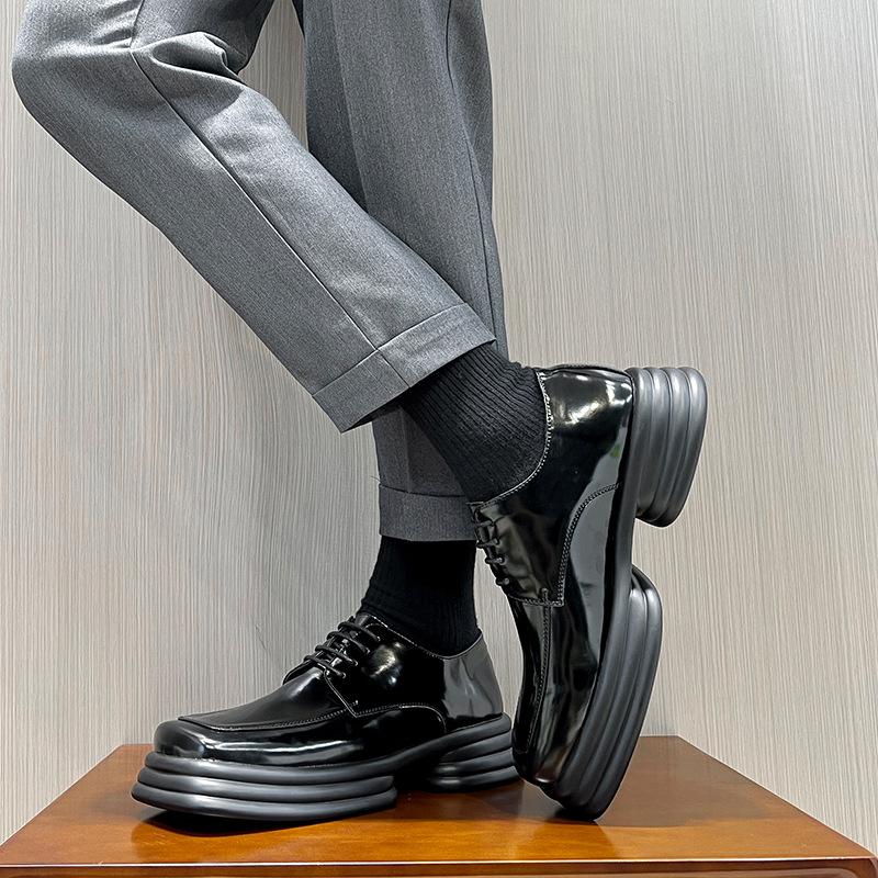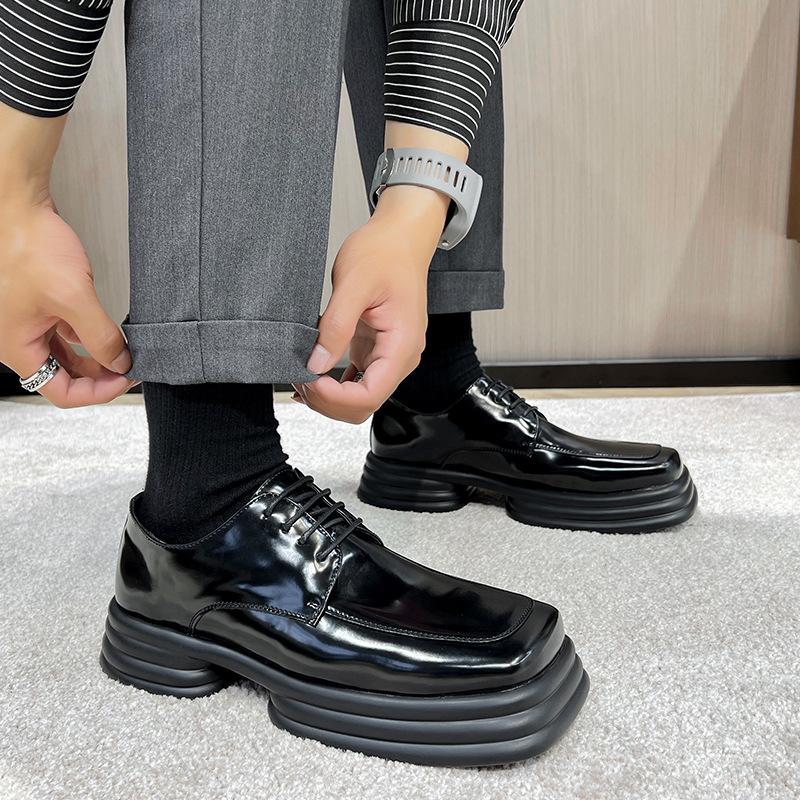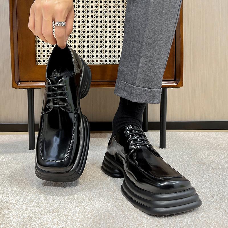 Туфли из лакированной кожи в стиле ретро с квадратной головкой, толстая подошва, толстый каблук, одинарные туфли, мужские кожаные туфли 36763-T