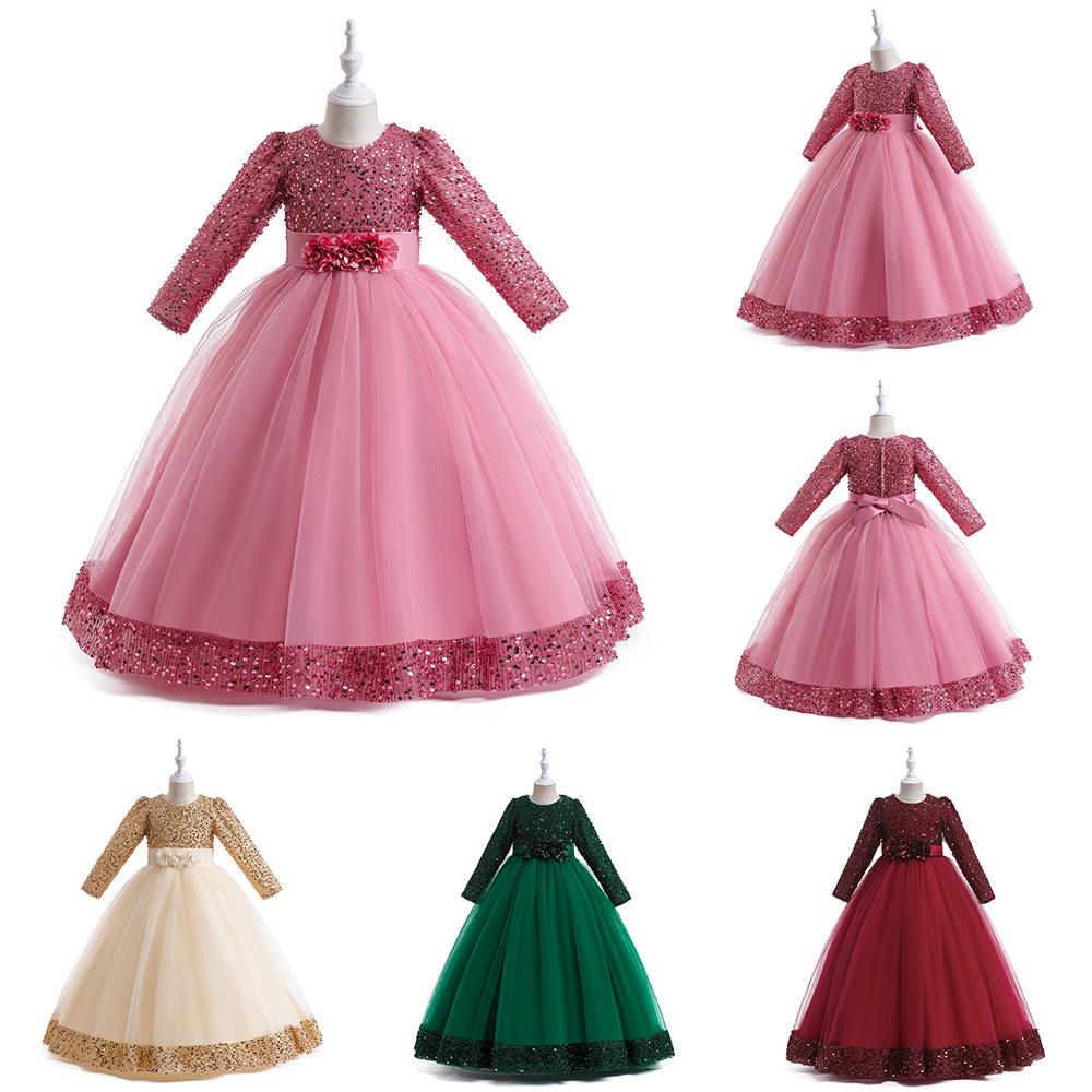 Длинные рукава Зимнее платье для девочек-цветочниц на свадьбу Рождественское платье Принцесса Торжественное длинное платье Детские платья для девочек Официальное вечернее платье