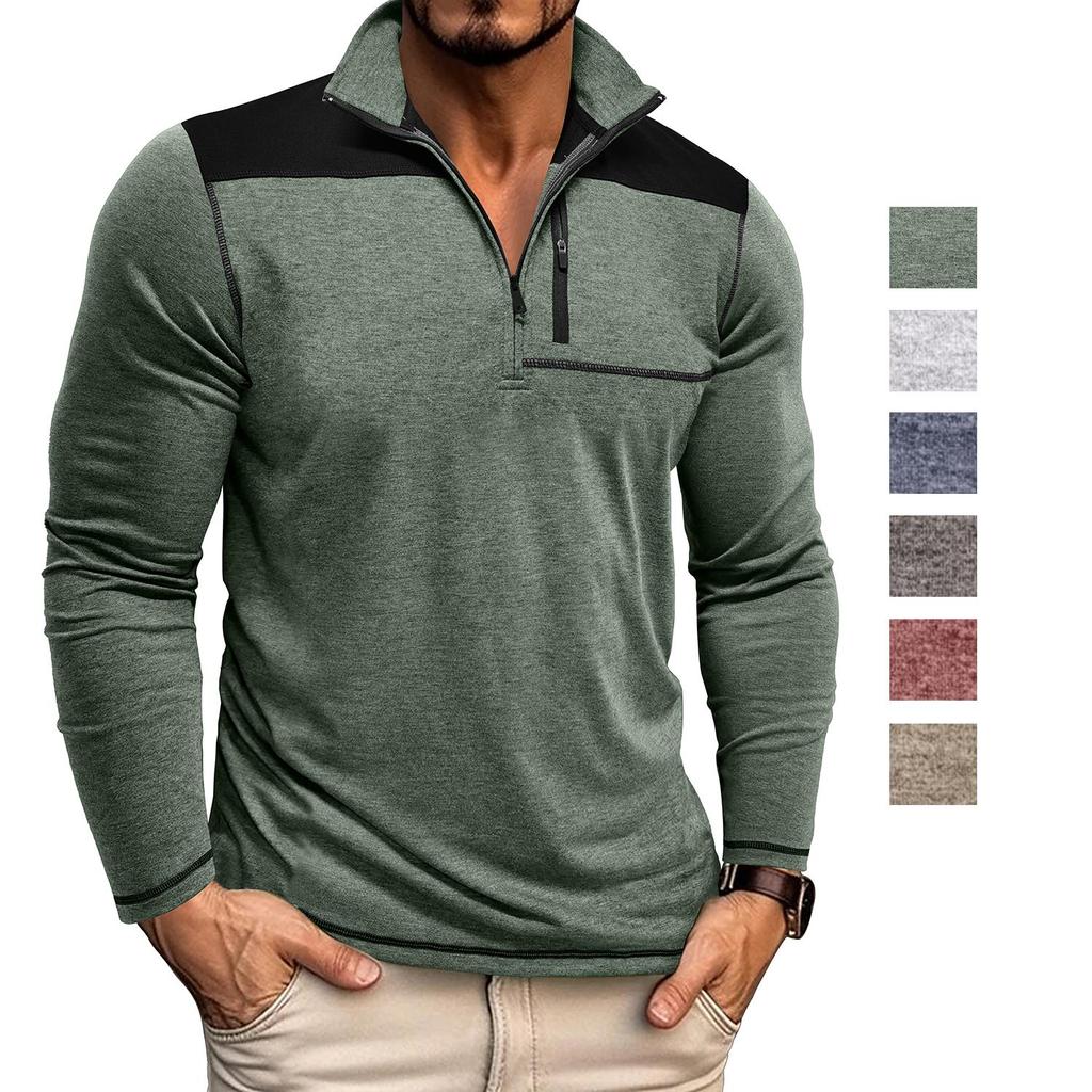 Мужские топы с воротником-стойкой, длинными рукавами, футболки контрастных цветов, свитшоты с застежкой-молнией и нагрудным карманом, повседневная спортивная одежда на осень и весну — купить товар онлайн с бесплатной доставкой по всему миру!