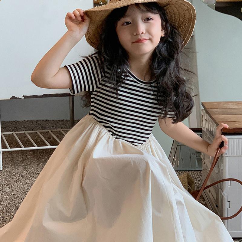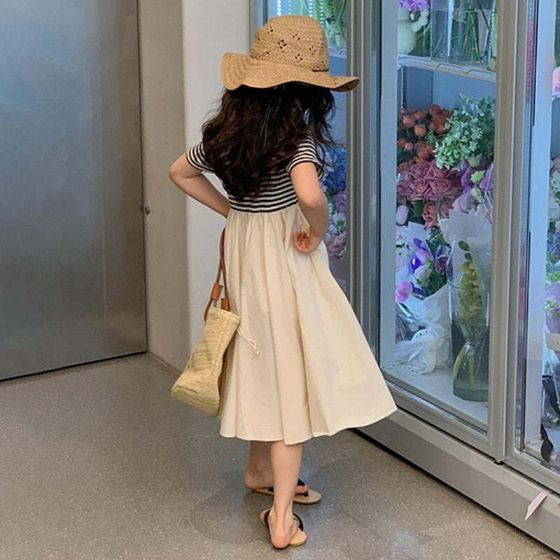 2. Дизайн - летнее платье для девочек с круглым вырезом в полоску в стиле пэчворк, пляжное платье в курортном стиле, милое платье принцессы сделает ваших детей более привлекательными и соберет множество комплиментов.
