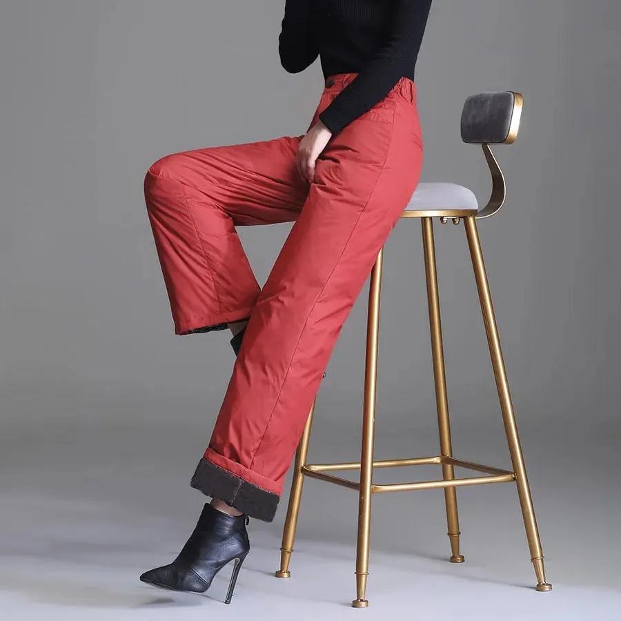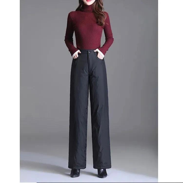 Женские зимние брюки с высокой талией из хлопка, широкие брюки, повседневные, утолщенные, пушистые, мешковатые, зимние, теплые, ветрозащитные, прямые