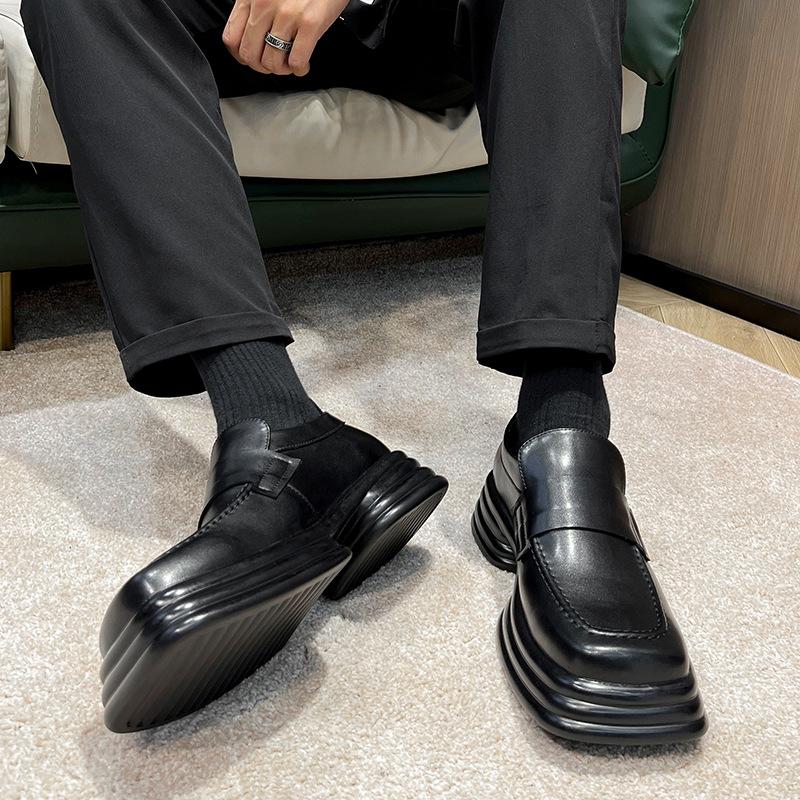 Туфли на платформе в британском стиле, маленькие кожаные туфли с квадратным носком, мужские весенне-осенние, новые повседневные туфли на подошве Muffin Sole 36770-T