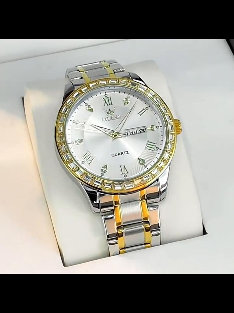 Римские кварцевые часы для мужчин с бриллиантами, роскошные мужские наручные часы с двойным календарем, водонепроницаемые часы из нержавеющей стали, подарок