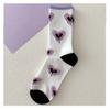 Женские белые носки, милые хлопковые носки с сердечками, кавайные, элегантные, аниме, фиолетовые женские носки
