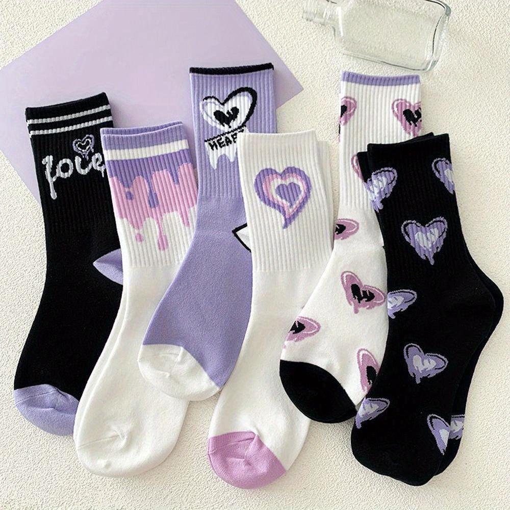 Женские белые носки, милые хлопковые носки с сердечками, кавайные, элегантные, аниме, фиолетовые женские носки — купить товар онлайн с бесплатной доставкой по всему миру!