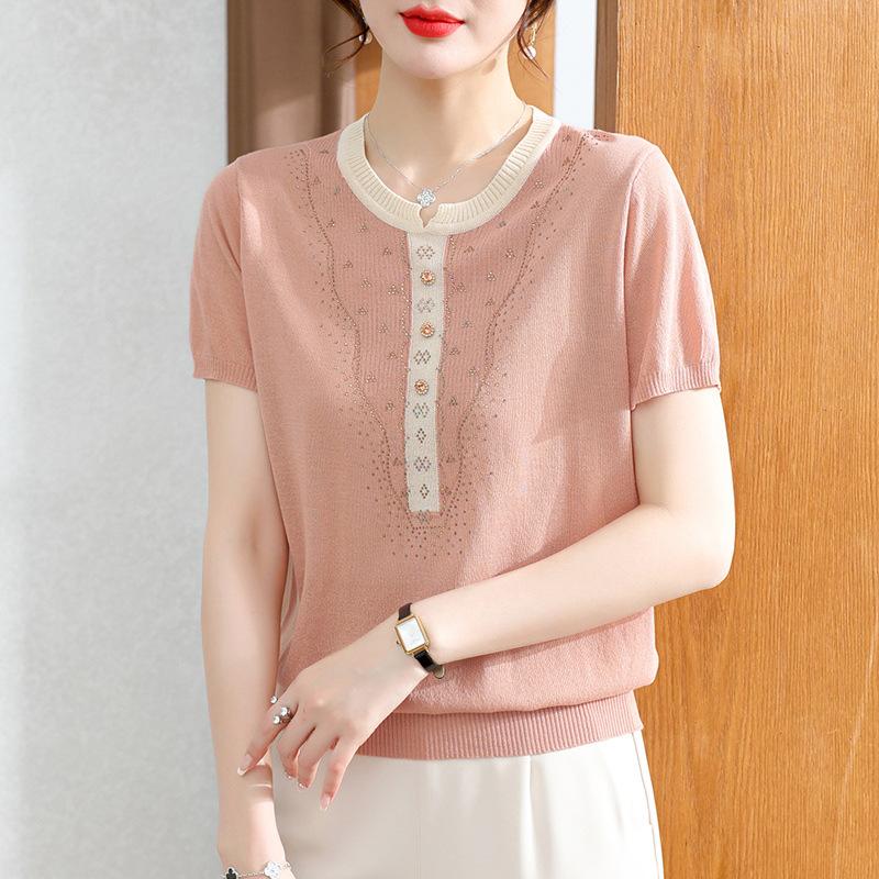 Летняя одежда для мам, короткий рукав, трикотажный топ, футболка из ледяного шелка, модные футболки для женщин среднего возраста и пожилых женщин
