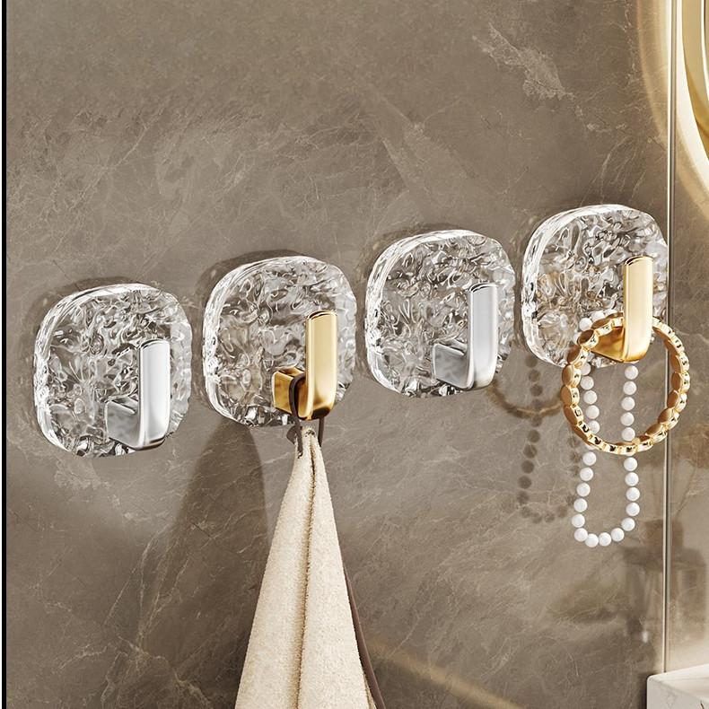 Без перфорации, легкий роскошный узор на леднике, крючок для ванной комнаты, бесшовный крючок для ванной, самоклеящийся крючок, крючок для одежды за дверью