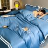 Комплект из четырех предметов из стираного шелка, высококачественное постельное белье из ледяного шелка, вышитое одеяло, покрывало, простыня, комплект из трех предметов
