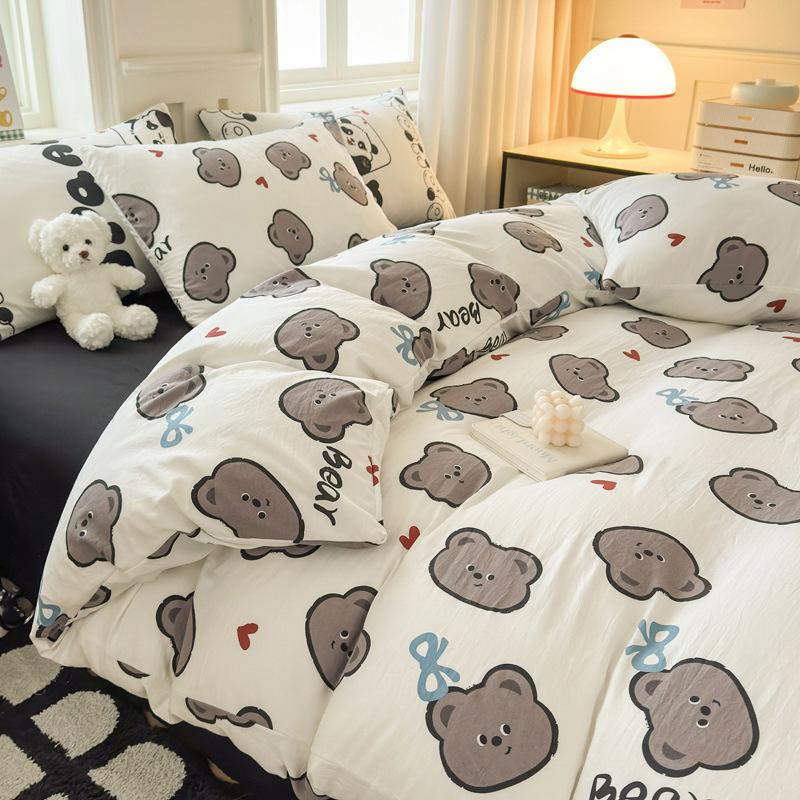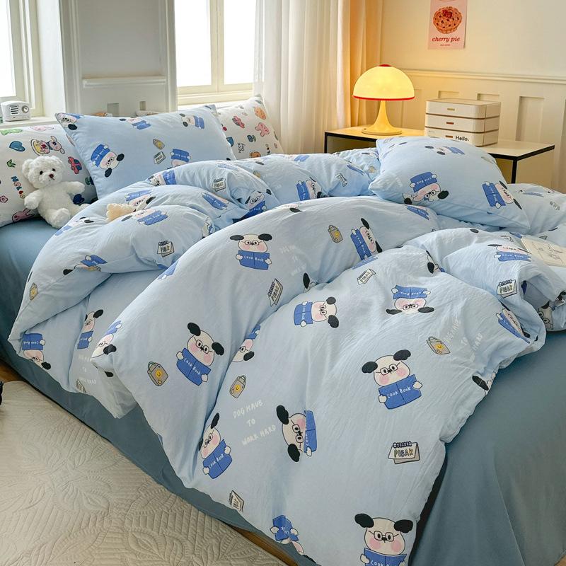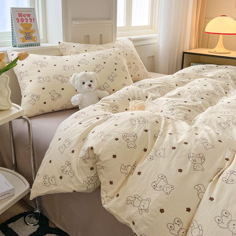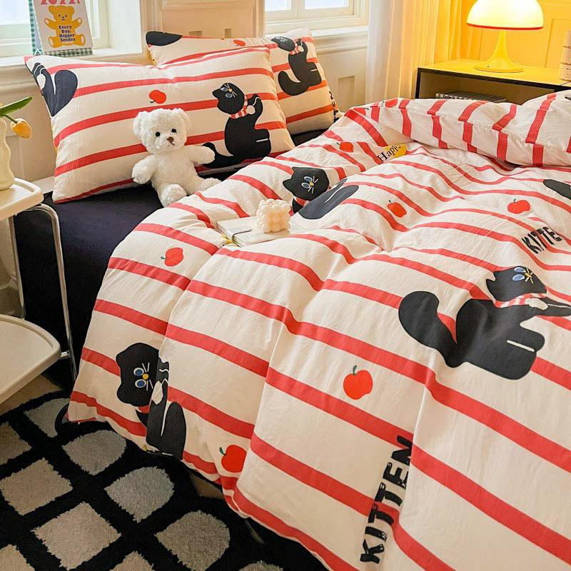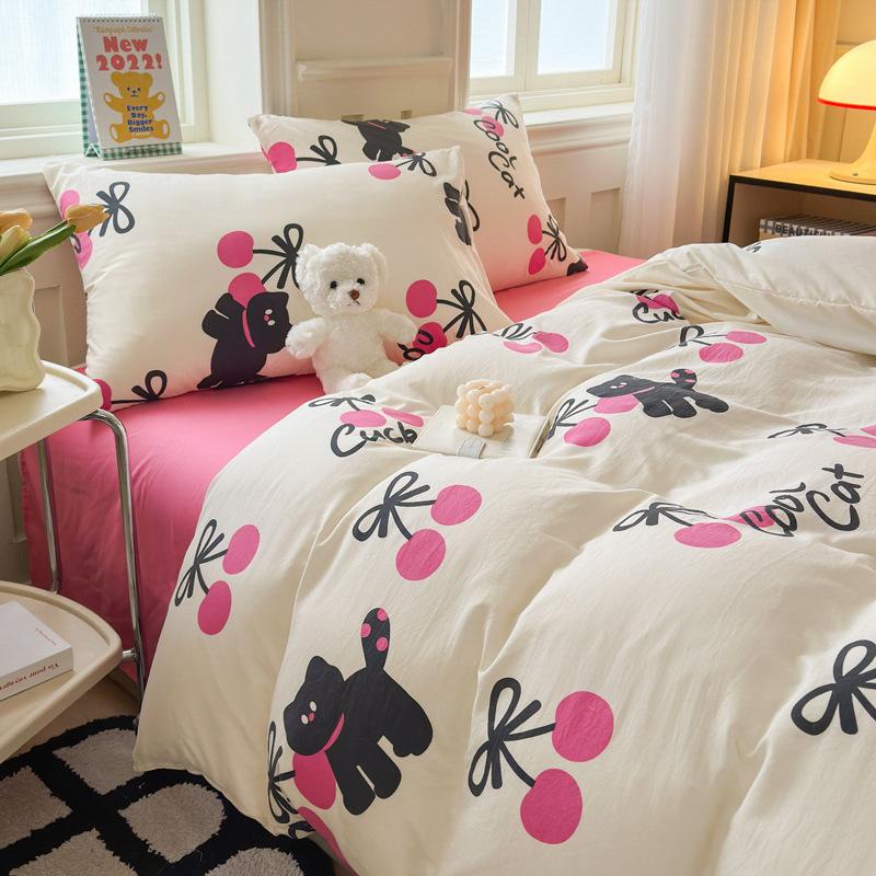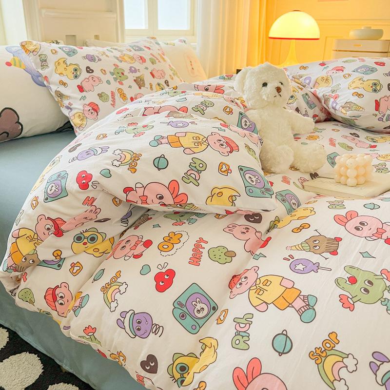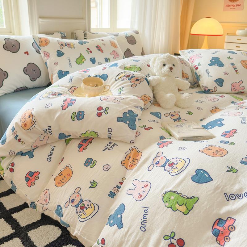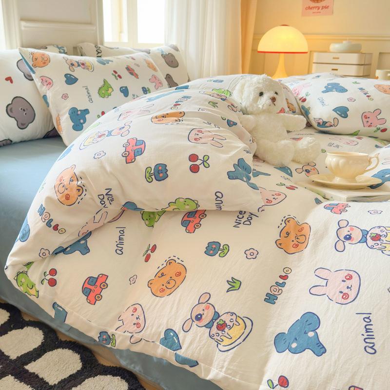 Маленький прозрачный комплект из четырех простыней из стираного хлопка, пододеяльник, комплект постельного белья из трех предметов