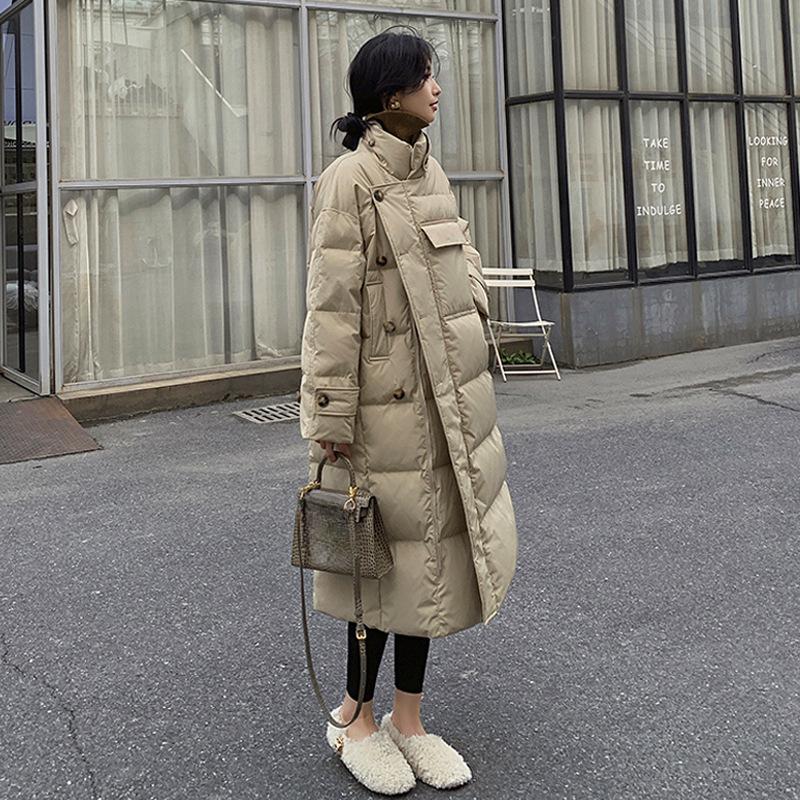 Ветрозащитное пальто с воротником-стойкой, зимние женские пуговицы, большие карманы, длинная парка, утепленная теплая хлопковая куртка, корейская куртка-пуховик
