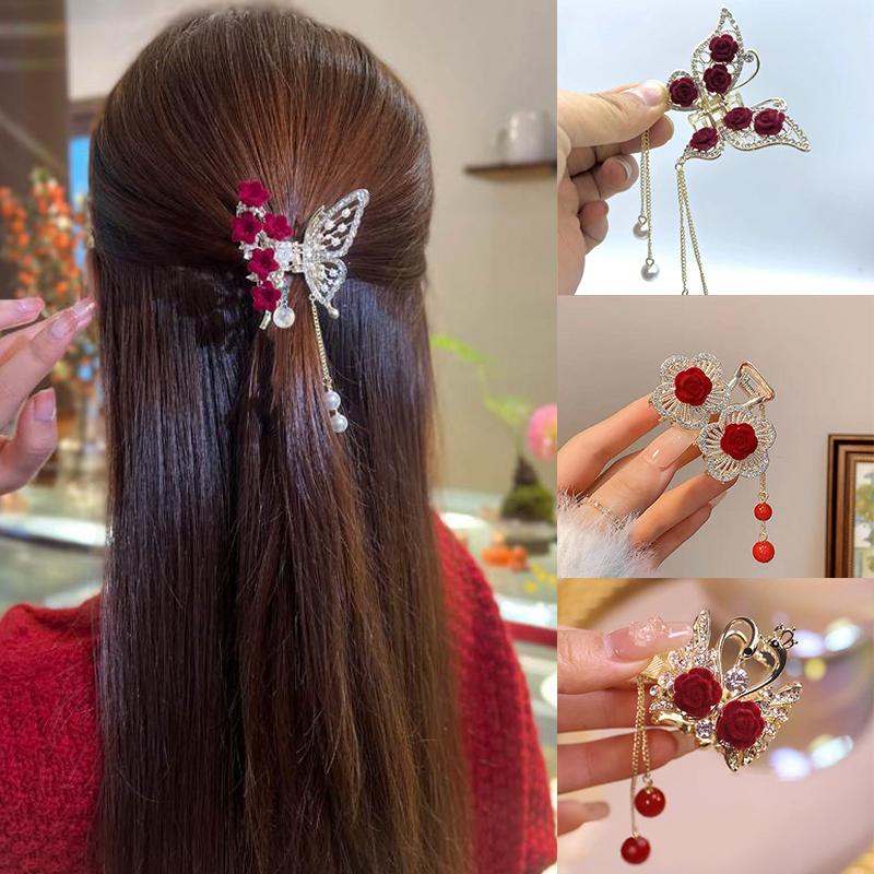 Красная роза заколка для волос бабочка заколка для волос когти женская шпилька кисточка таблетка головка конский хвост пряжка заколка аксессуары для волос