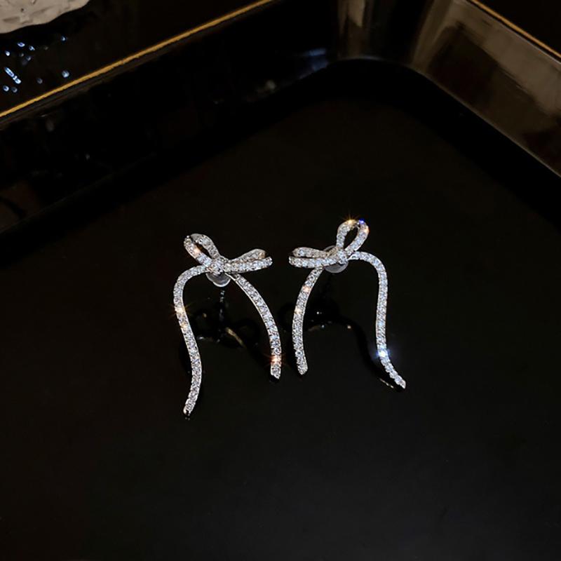 1 пара легких роскошных сережек-гвоздиков с бантом из страз для женщин, модные изысканные длинные серьги с кристаллами, украшения для вечеринки и свадьбы — купить товар онлайн с бесплатной доставкой до всему миру!