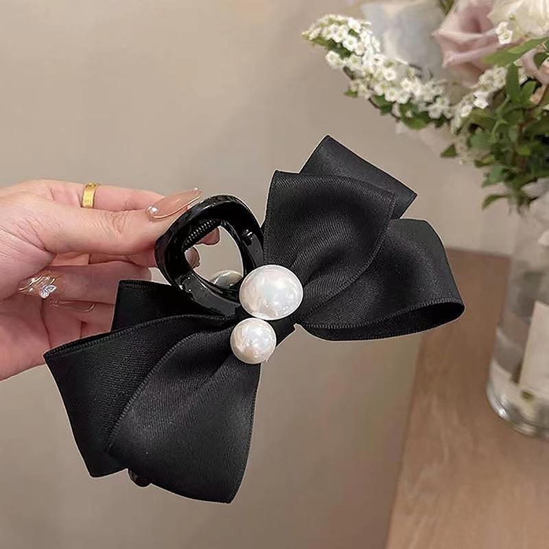 Новые атласные большие банты с жемчугом, акриловые заколки для волос для женщин, корейские модные заколки для волос, усовершенствованные задние заколки-ложки, аксессуары для волос