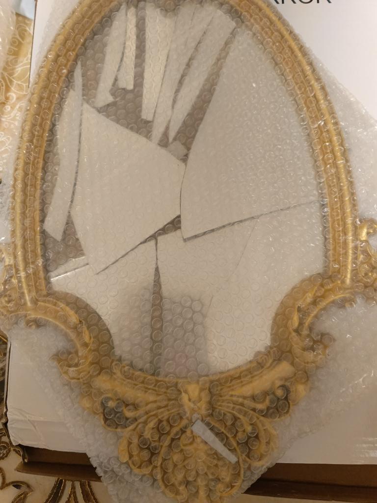Зеркало разбито, восстановлению не подлежит. Плохая упаковка, нет прокладочного материала. Прошу заменить на такое же, очень красивое