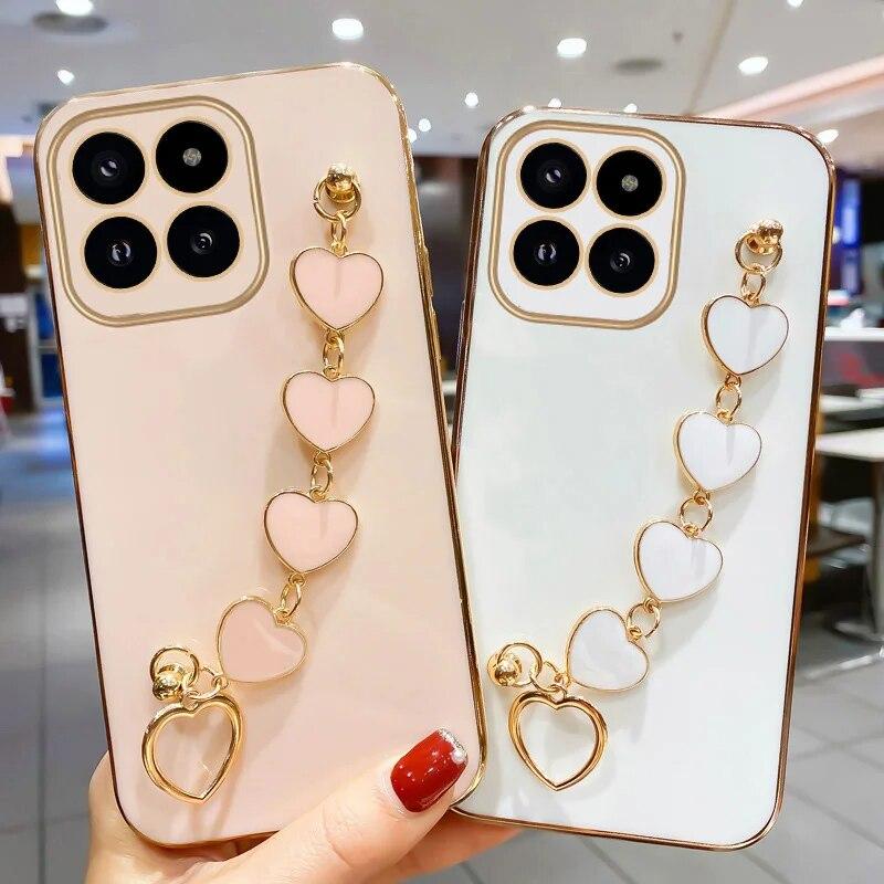 Чехол-браслет с гальваническим покрытием Love Heart для Xiaomi Mi 14T Pro 13T Pro 12T 11T Pro Chain Wristband, защита объектива камеры, мягкий чехол